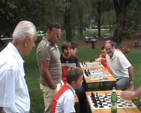 ![]() | Der mehrfache Salzburger Stadtmeister Bernhard Besner spielte simultan gegen 8 Schachspieler und erreichte sieben Siege und ein Unentschieden. Florian Pöllner, ein erfahrener Turnierspieler aus Freilassing, war der einzige, dem es gelang, ein Remis zu erreichen. |