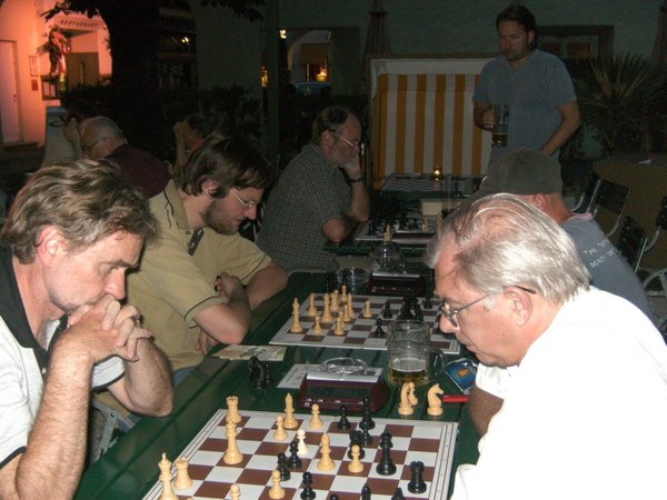 Der erste sommerliche Schachabend im Sternbräugarten bot für 16 Teilnehmer einen vergnüglichen Anfang des 4PF-Turniers. In Führung nach dem ersten Abend ist Neuwirth Gernot mit 3 Siegen. Sehr erfreulich ist der Neueinstieg von Lederer Anatol im Klub, gleich mit 2 Punkten, einen mit einem schönen Matt sowie die Rückkehr von Herndl Gerald, der auch in der Meisterschaft wieder aktiv wird. Die beiden kommenden Dienstage geht’s weiter!