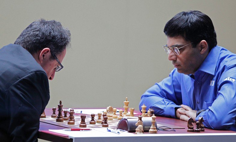 Titelverteidiger Anand schlägt zurück und gewinnt in nur 17 Zügen! Damit ist das Match wieder ausgeglichen, aber im Gegensatz zur ersten Hälfte des Wettkampfs wird nun nicht mehr auf Sicherheit, sondern auf Gewinn gespielt!