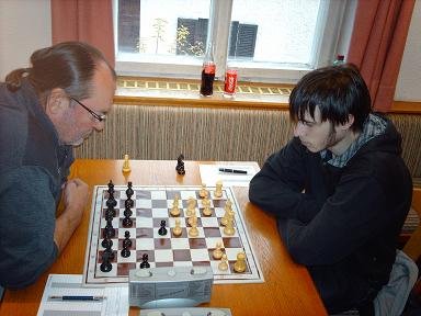 Auf Brett 1 bekam es Böhm mit Spernbauer zu tun. Die Partie war schnell und als erste beendet. Der bisher in jeder Runde im Einsatz befindliche Böhm erreichte das dritte Remis hintereinander gegen Spieler mit wesentlich mehr ELO-Punkten Gegner (Költringer jun. von Seekirchen: 1834, Häusler von Trimmelkam: 1997, Spernbauer: 1718). Er wird sicher ein Anwärter für den ersten Platz in der ASK-Wertung betreffend ELO-Gewinner.