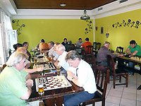 Sehr ausgewogen ist dieses Jahr das Teilnehmerfeld. So setzten sich zur ersten Runde des Spieltages die drei Elo-Gruppen (>1800; 1500-1800; <1500) aus gleich vielen Spielern zusammen. Zu verdanken hatten wir dies dem Umstand, dass an diesem Abend mit Bernhard Besner, Christoph Löffler und Robert Scheiblmaier gleich drei ASK-Bundesligaspieler anwesend waren. Am „anderen Ende“ der Skala wiederum durfte sich unser Schachneuling Cisca Kocher über ihren ersten Sieg im Turnier freuen. Wir gratulieren herzlich! Überhaupt war das Teilnehmerfeld mit 19 Spielerinnen und Spieler wieder recht gut besetzt!
