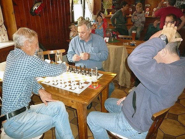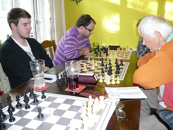 Auf Brett 3 spielte Klaus Thalhammer mit schwarz gegen Gernot Kleiter. Aus der Eröffnung kam Gernot etwas aktiver heraus, weswegen dieser auch das Remisangebot von Klaus ablehnte. Klaus musste also spielen. Und das kann er ja bekanntlicherweise auch – wenn er will. So konnte er eine ausgeglichene Stellung erreichen. Das reichte Klaus und er bot erneut Remis. Sein zweites und wohlgemerkt letztes Remisangebot. Diese Drohung übermannte den vorerst noch spielwilligen Gernot und so endete auch diese Partie Remis. Insgesamt stand es somit 1:1.