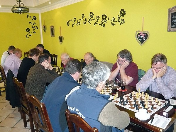Auf Brett 4 freute sich Gernot Neuwirth nach seiner Abstinenz in der letzten Runde auf seinen Einsatz. Er spielte mit weiß gegen Karl Walkner. Gernots Tatendrang wurde jedoch bald auf eine Prüfung gestellt, da Karl eine schwer zu knackende passive Eröffnung wählte. Und das kommt halt gar nicht so dem Spiel-Style von Gernot entgegen. Unser ehemaliger Mannschaftsführer konnte zwar ein leicht aktiveres Spiel mit guten Läuferlinien erreichen aber es mangelte an Ideen wie er seinen Gegner bezwingen konnte. Endlich öffnete Karl das Zentrum, doch es blieb bloß eine ausgeglichene Stellung übrig. Nach einem darauffolgendem Remisgebot von Karl stand es 1,5:1,5.
