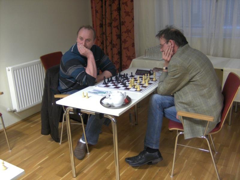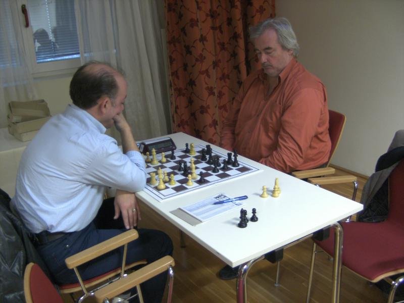 Am ersten Brett kämpften Christoph Löffler und Radoslav Panajotov lange um den Sieg. Die Partie schien schon etwas besser für Radoslaw, aber er konnte nichts verwertbares vorzeigen. Gegen Ende der Partie war die Stellung von Christoph bereits leicht vorteilhaft, aber die akute Zeitnot zwang ihn, ins sichere remis abzuwicklen. Am 2. Brett wurde auch sehr lange gespielt, aber die Partie zwischen Michael Herrmann und Heinz Kratschmer schien nie die Remisbreite verlassen zu haben. Am 3. Brett zauberte Lukas Prüll mit Schwarz gegen Manfred Fuchs ein Opfer aus dem Hut, gegen das sich Manfred lange, aber letztendlich erfolglos wehrte. Am 4. Brett spielte Reinhard Vlasak zunächst etwas sorglos und ermöglichte Gerhard Rosner einen gut aussehenden Angriff am Damenflügel. Reinhard konnte den Angriff aber parieren und erreichte im Endspiel ein sicheres remis. Am 5. Brett einigten sich Josef Nussbaumer und Gernot Gruber im Mittelspiel auf remis. Am 6. Brett hatte Walter Krimbacher lange zu kämpfen, bis er gegen Andreas Hopfgartner Vorteil und einen vollen Punkt erreichte.