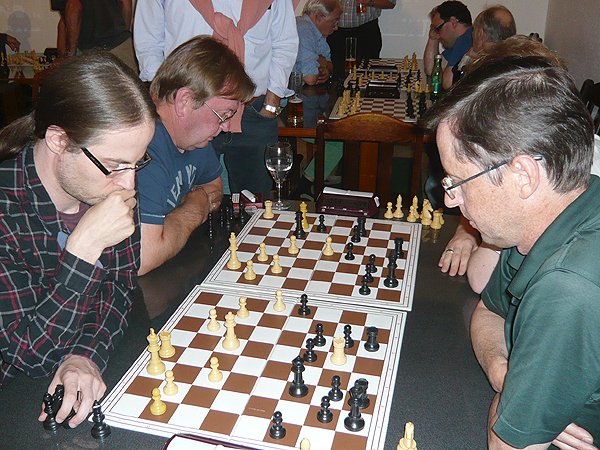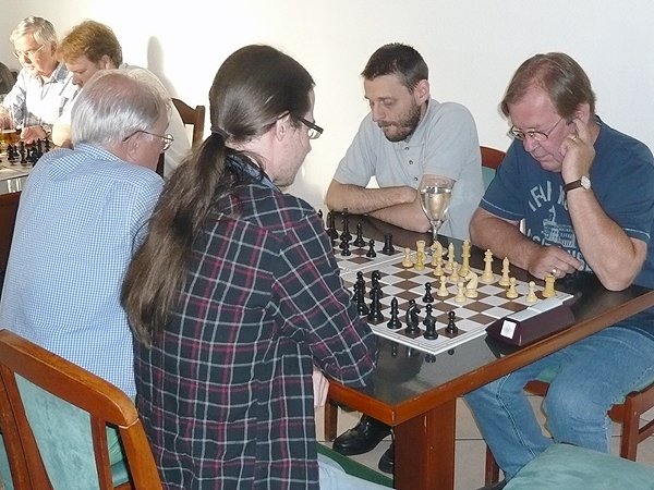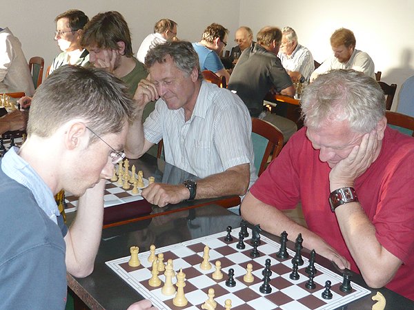 Das schwerste Los bekam in der ersten von 3 Partien sicher Thomas Veigl, der gegen Bernhard Besner antreten musste und die Partie verlor. Gernot Neuwirth hatte sich gegen Miguel Medina bereits einen Mehr-Turm erarbeitet, als er in Panik vor einem möglichen Partieverlust auf Zeit Remis bot, das sein Gegner annahm. Besser machten des die beiden anderen: Willi Veigl spielte das erste Mal im Turnier mit Stefan Heigerer gegen einen Elo-stärkeren Spieler und gewann auch dieses Spiel. Stefan Stader hatte gegen Günther Maier keine Mühe und gewann souverän.