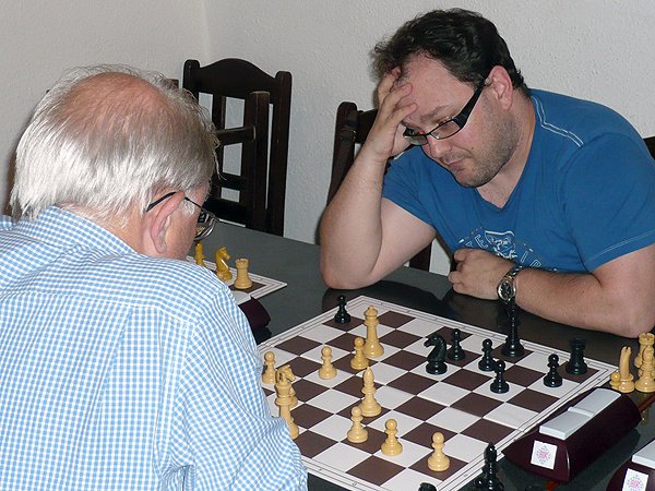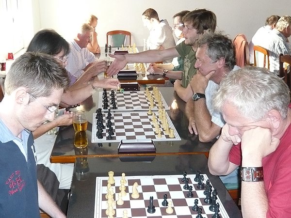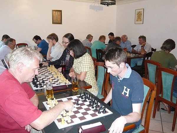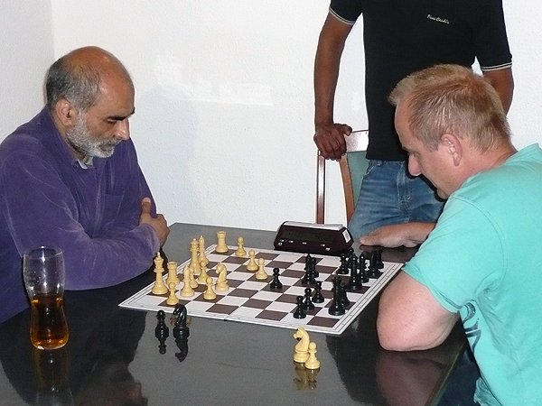 Für eine kleine Überraschung sorgte dann zu späterer Stunde noch der Besuch eines IM. Ali Habibi (2296) war auf der Durchreise durch Österreich und bekam in seinem Salzburger Hotel die Auskunft, doch beim ASK vorbeizuschauen wenn er Lust auf eine Partie hätte. Als möglicher Gegner im Sommercup bot sich an diesem Abend ohnehin nur ein Spieler an – und der machte seine Sache gut. Bernhard Besner konnte dem „Stargast“ Paroli bieten und sogar gewinnen. Bernie verlor dann im Anschluss an das Schnellschachturnier zwar die Mehrzahl der Partien, die gewertete (Schnellschach-)Partie ging aber an ihn!