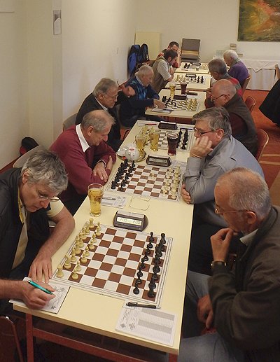 Auf Brett 5 kam Walter Hattinger zum ersten Mal zum Einsatz. Walter hielt sich brav an die interne Abmachung nicht vor dem 30. Zug Remis anzubieten. Das Remisangebot kam dann aber prompt im 30. Zug. Doch Muhr wollte in aktiverer Stellung weiterspielen. Die zweitlängste Partie des Abends wurde in einem ausgeglichenen Turmendspiel letztendlich dann doch remis gegeben.
