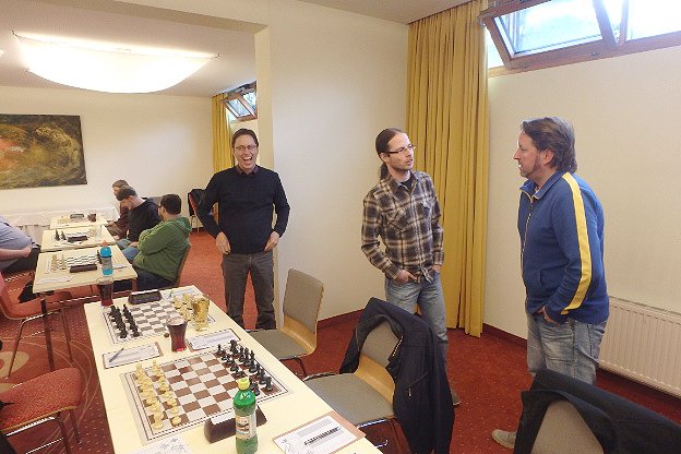 Trotz der 2:4 Niederlage herrschte auch nach den Partien eine gute Stimmung. In der Hotelbar analysierte man noch eifrig bis zur Sperrstunde. Wir wechselten anschließend einen Raum weiter in die Hotellounge in der wir weiter analysierten. Endlich ausanalysiert, traf sich der harte Kern dann noch auf ein paar Getränke im Chez Roland in der Altstadt.