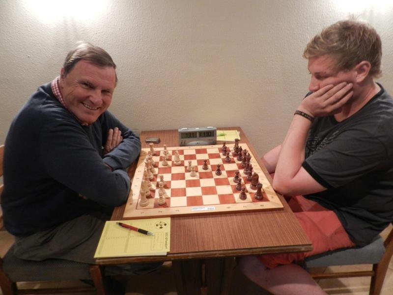 Am ersten Brett hatte Lukas Prüll gegen Gerhard Schöpf einen Bauernnachteil, der sich bis ins Endspiel zog. Es gelang ihm nicht in ein Dauerschach zu kommen. Für 15 Züge standen Prüll noch ca. 4 Minuten zur Verfügung Zeit (ohne Zeitzusage von 30 Sekunden pro Zug), wobei Schöpfs Zeitvorteil mit Fortschreiten der Partie immer weniger wurde. Schöpf opferte den Turm für den Läufer. Prüll nahm mit dem Turm und gab anschließend auf, weil als nächster Zug ein Doppelangriff der Dame auf König und besagten Turm gekommen wäre, der mit dem Turmverlust verbunden gewesen wäre. Nach dreieinhalb Stunden stand das Gesamtergebnis von 5:1 fest.