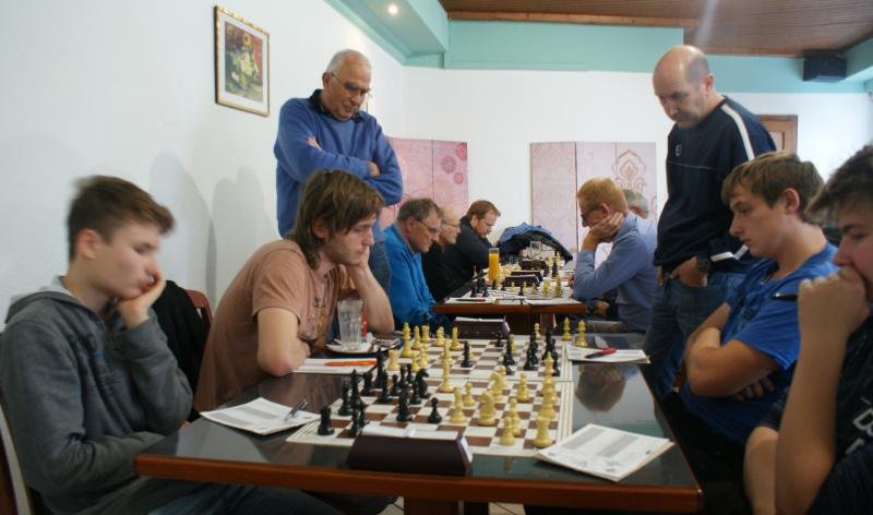Einziges Remis auf Brett 1 – Mannschaftsführer Lemmie mit prüfendem Blick