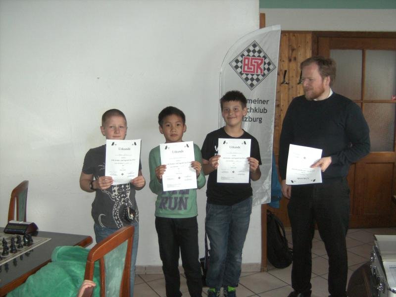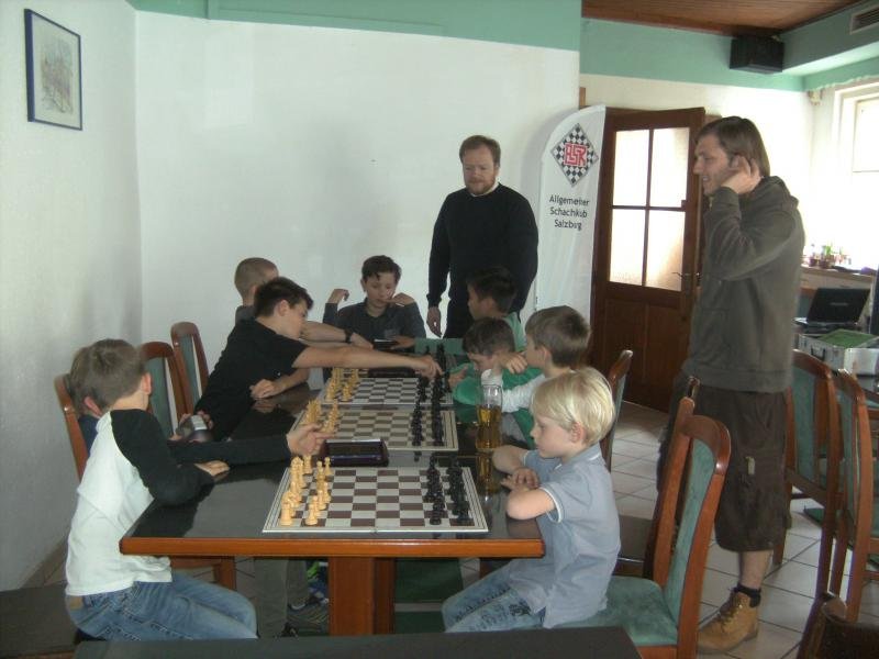 Erstmalig konnte heuer am 25.05.2016 ab 15:00 Uhr als ein Schluss- und für viele Teilnehmer gleichzeitig Höhepunkt der Saison ein kleines internes ASK-Jugendturnier ausgerichtet werden. Von den 15 Jugendlichen, die an unserem Kinder- und Jugendtraining teilnehmen, konnten trotz Schönwetters und verlängertem Wochenende zehn auch zu diesem unseren Turnier antreten. Das siebenrundige Schnellschach-Turnier nach Schweizer System wurde mit 10 Minuten ohne Zeitzugabe nach den FIDE-Schnellschachregeln ausgetragen, wobei einige turnierspezifische Regelungen galten, u.a. unmögliche Züge erst beim dritten von einem der Turnierleiter bestätigten Mal zum Partieverlust führten. Nachdem bereits einige unserer Kinder- und Jugendspieler bei der Landesmeisterschaft sowie beim Gollinger Schnellschachturnier damit verschiedenartige Erfahrungen gesammelt hatten (bei der Landesmeisterschaft führte erst der dritte, in Golling bereits ein unmöglicher Zug zum Partieverlust – in letzterem Fall wurde mehr als die Hälfte der Partien auf diese Art entschieden!), hat sich dieser Modus als tragfähig erwiesen – kaum eine Partie musste durch unmöglichen Zug entschieden werden.