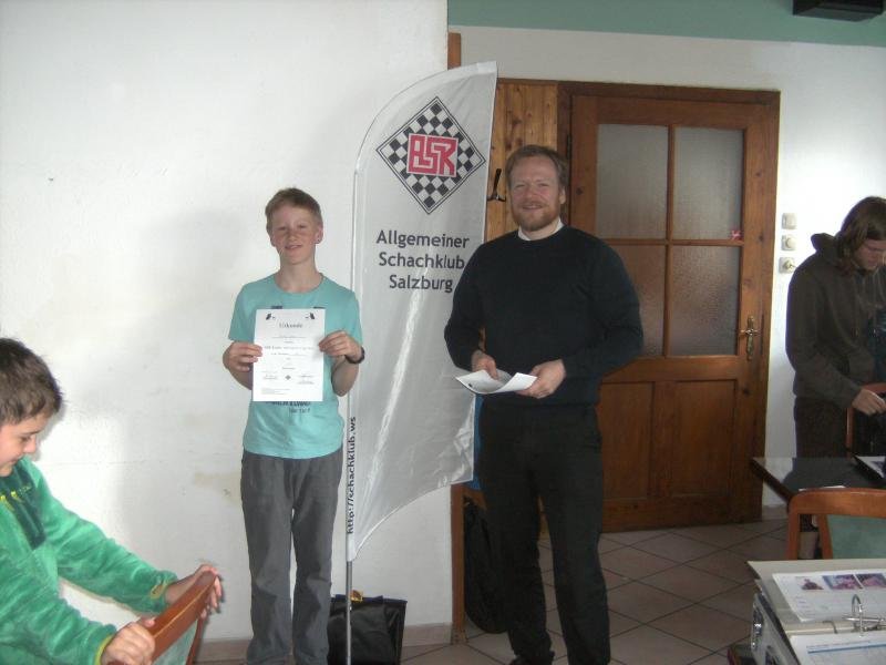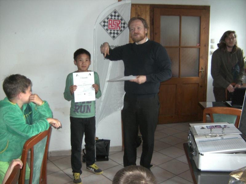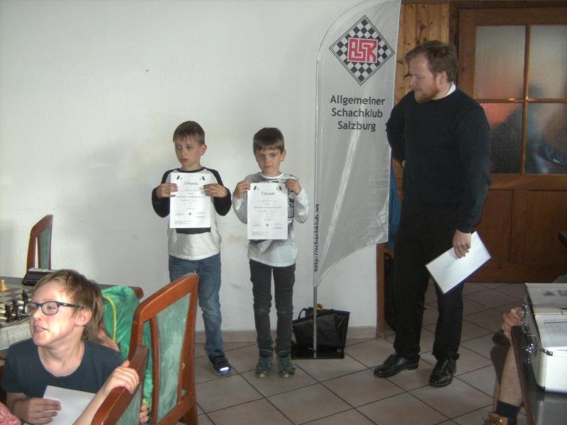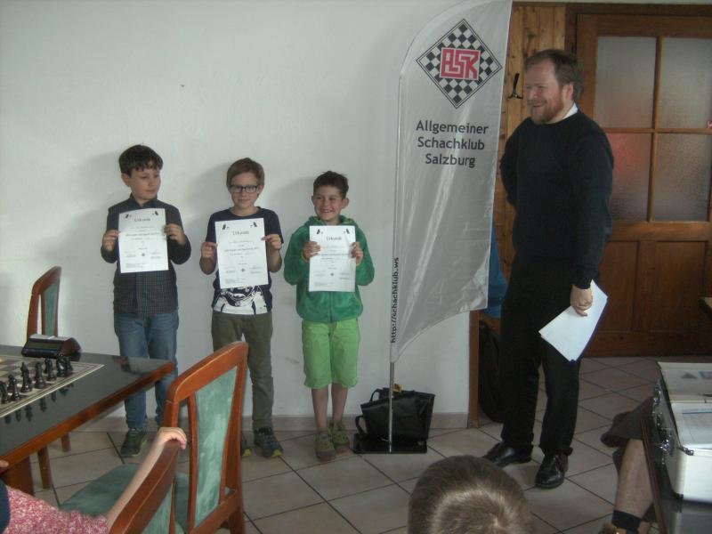 Einige technische Probleme, die Turnierleiter Reinhard Vlasak richtig ins Schwitzen brachten, erforderten nach der dritten Runde eine längere Pause, die allerdings lediglich dazu führte, dass wir mit unserem Turnier exakt wie geplant um 18:30 Uhr fertig wurden, noch eine kleine Siegerehrung feiern und wie zuvor angekündigt um 18:45 die Teilnehmer und ihre Eltern verabschieden konnten.