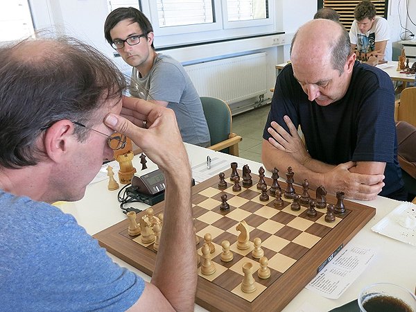 | Klaus – hier gegen FM Kaspret – musste ansonsten immer wieder Partien gegen ambitionierte Jungspieler führen, die ihm einiges abverlangten. Als routinierter Spieler passierten ihm aber keine „Ausrutscher“. (c) Robert Burgstaller |