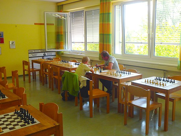 | Manfred – hier am letzten Spieltag vor schon „schütterer Kulisse“ – zeigte vor allem gegen Elo-stärkere Gegner schöne gehaltvolle Partien. Leider brachte er sich mit Unkonzentriertheiten gegen schwächere Spieler um eine bessere Platzierung. (c) Klaus Thalhammer |