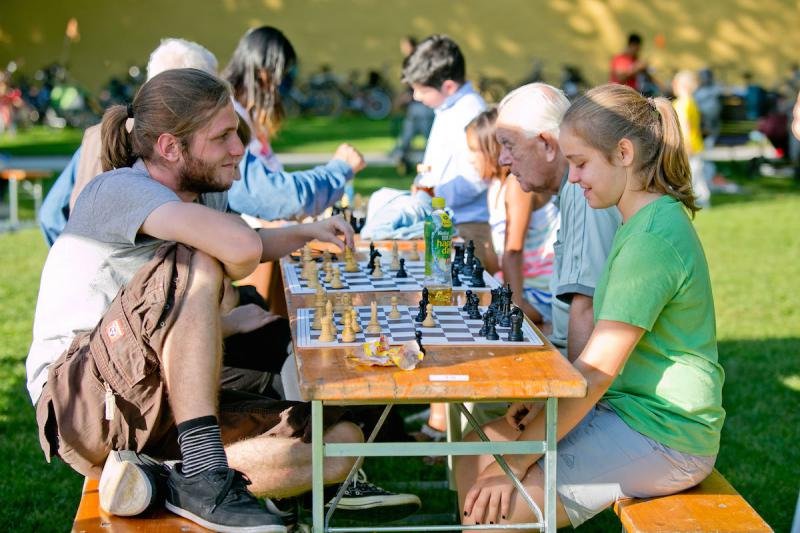 Großer Andrang beim ASK Schachstand beim Hopsi-Hopper Spielefest in Hellbrunn