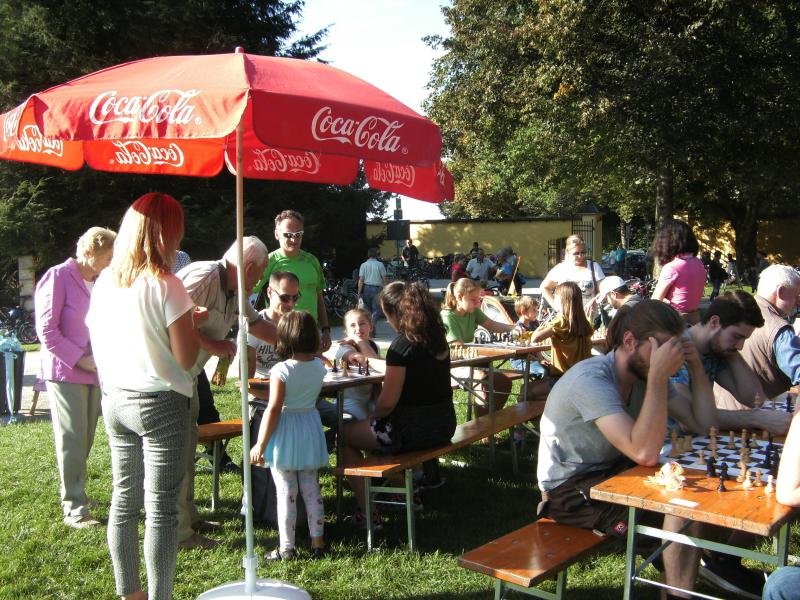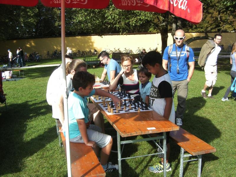 Das Spielefest der ASKÖ Salzburg fand am Sonntag bei herrlichem Spätsommerwetter statt. Dementsprechend groß war der Andrang bei den vielen Stationen, wie Kinderlauf, Selbstverteidigung, Frisbee, Red Bull Fußball und Eishockey, und vieles mehr. Auch die Hupfburg war wie immer sehr gefragt, und auch die Schachstation des ASK war meisten voll belegt.