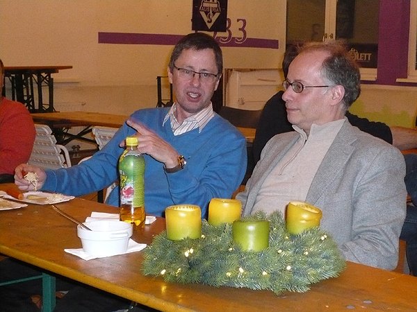 Nach einer kurzen Rede unseres Obmanns der ersehnte Start des traditionellen Weihnachtsblitzturniers, das Walter Hattinger (li) wie immer souverän leitete. |