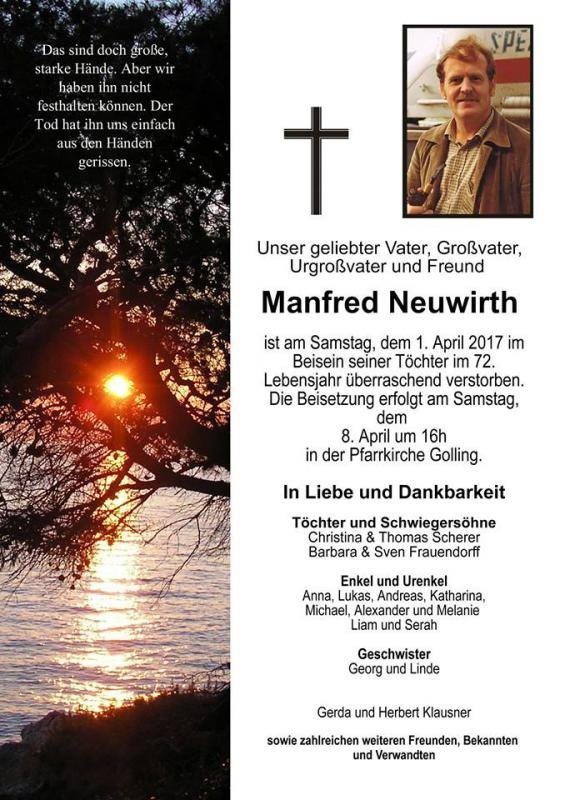 Manfred Neuwirth (Schwarzach) ist verstorben