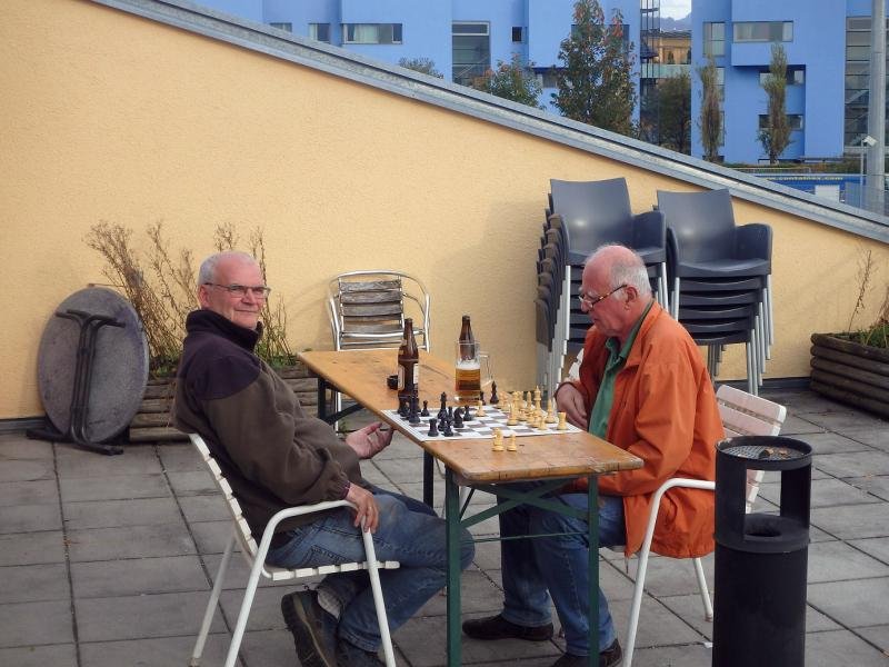 Wolfgang Mosshammer und Rupert Sonnbichler spielten einige freie Partien auf der Terasse des Violett