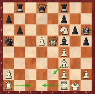 Es folgten Td2, Db3 Td1 mit den entsprechenden Verteidigungszügen. Ich fand keine weitere klare Verstärkung und versuchte es mit a4, was aber in weiterer Folge zur Vereinfachung führte.  Nach 24. … Tb8 und Tausch der Bauern war die Stellung tot-remis.