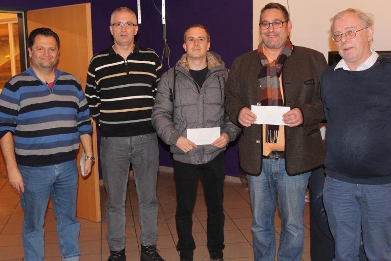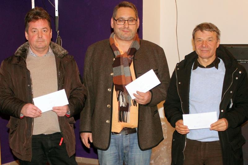 ![]() Die Turniersieger Mirsad Cardaklija (Rang 2), IM Vladimir Hresc (Rang 1) und Bernhard Besner (Rang 3) |