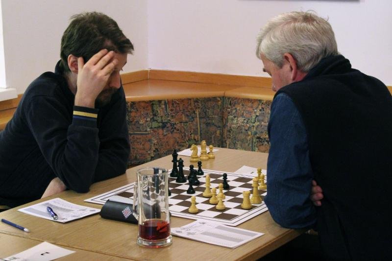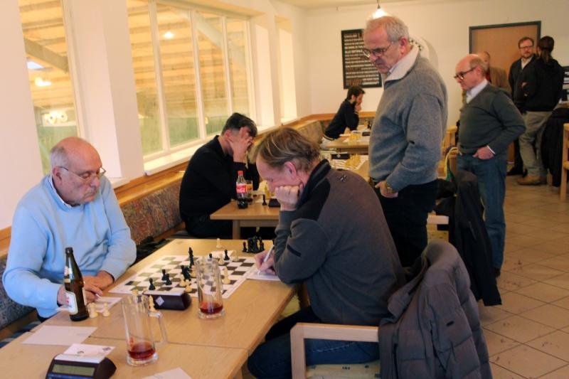 Einen verdientes Unentschieden holten die Skywalker bei den etwas höher einzuschätzenden Gollingern. Ein vorauszusehendes schnelles Remis gab es bald von Thomas Veigl gegen Kössler Andreas, was deren bisherigen Ergebnissen gegeneinander entsprach. Auch Anatol Lederer konnte sich nach erreichtem etwas besserem Mittelspiel nicht zu einer aggressiven Variante durchringen und er nahm das Remisangebot von Reschreiter Hans-Peter an. Dann folgte das nächste Remis, in dem Klaus Thalhammer den elostärksten der Gollinger, Buchebner Markus, mit einer unorthodoxen Eröffnung auf dem falschen Fuß erwischte. Dieser kam nicht richtig ins Rechnen und nahm in komischer Stellung das Remisangebot von Klaus nach einer Bedenkzeit von 45! Minuten an.