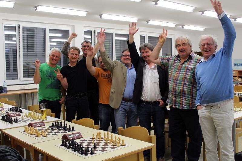 Meisterschaftsresümee: Von der Setzliste her waren wir nur als 6. in die Saison gestartet. Dass es am Schluss der 2. Platz wurde, unterstreicht die tolle Leistung der Spieler. Alle riefen ihr Potenzial hervorragend ab. Ganz besonders gut gelang das Christoph Löffler, der auf dem schwierigen Brett 1 mit 5 aus 9 Punkten (nur eine Niederlage) wahrlich ein Fels in der Brandung war. Und Michael Herrmann, der meist die längste Partie spielte und sich wie ein Boa Constrictor um den Gegner wickelte, bis diesem in 6 von 9 Fällen die Luft aus ging –  ohne selber jemals in Verlustgefahr zu kommen.