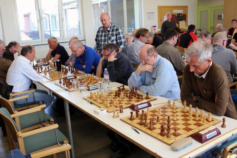 Guter Start: Es entwickelten sich überwiegend ausgeglichene Mittelspiele und in den ersten gut zwei Stunden war kaum ein Vorteil für mich erkennbar. Dann kam aber Bewegung in die Sache.  Helmut Usleber auf Brett 2 legte die Partie gegen Gerald Junger gewohnt zweischneidig an, mit Königen auf verschiedenen Seiten. Beide Kontrahenten griffen die gegnerische Königsstellung an, doch Helmuts Konzept erwies sich überzeugender. Er trieb den h-Bauern energisch voran, setzte mit einem nicht annehmbaren Springeropfer nach und zwang den Gegner dann bald zur Aufgabe. Zum Schluss also doch noch der verdiente Sieg von Helmut in einer für ihn schwierigen Saison. Er hatte sich ja bereit erklärt, als 5 gesetzter lt. Eloliste am schweren Brett 2 anzutreten.