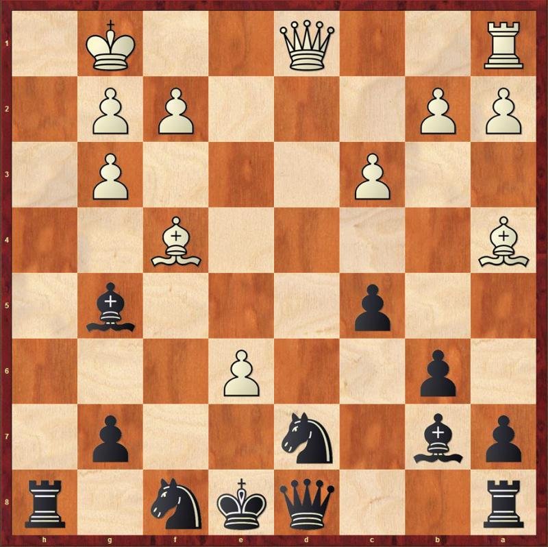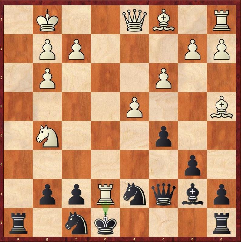 Florians  15. …  Sf8 kontert Michael mit La4 und die Schachprogramme schlagen auf Vorteil für Weiß. Florian deckt den König mit dem f6 Springer. Wie hätte Michael nun einen klaren Vorteil herausholen können?
