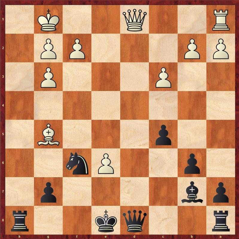 Aber auch Michaels Lf4 ist sehr gut. Nach Dd8 ist Schwarz komplett eingekesselt. Weiß versucht das mit dem starken e6 zu zementieren. Auch ein ruhiger Turm Rückzug hätte den Vorteil behalten
