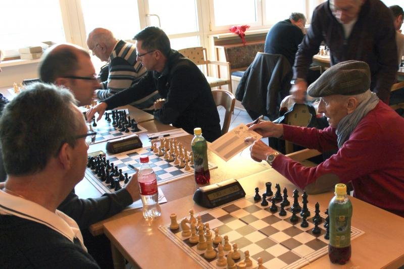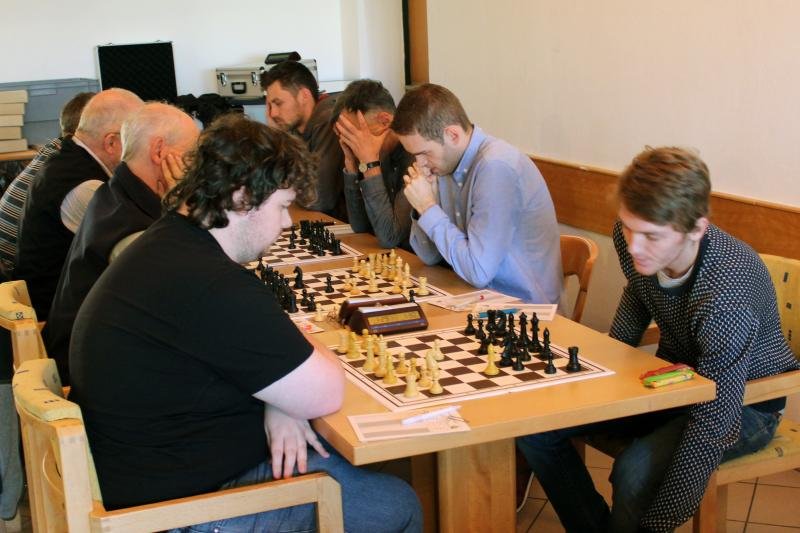 Brett 3: Ich (Walter Haselsteiner) konnte nach ausgeglichener Eröffnung leichten Druck erzeugen. Mein Gegner versuchte v.a. Figuren abzutauschen. Bei einem Springerangriff auf meine Dame, übersah er einen Konter. Mein Springer konnte den Läufer gleichzeitig mit einer Gabel auf König und ungedeckter Dame schlagen. In der Endabrechnung der kleinen Kombination hatte ich 2 Figuren mehr. Der Gegner spielte noch bis zum Matt weiter.