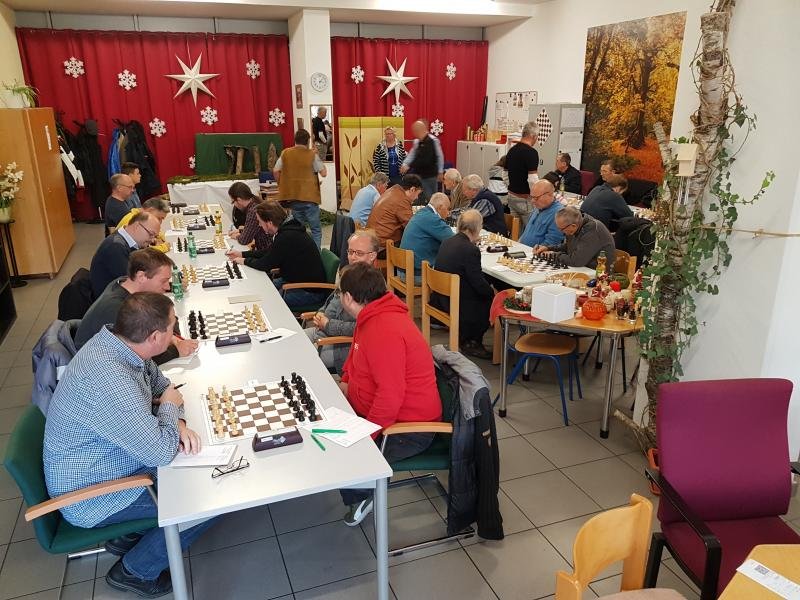 Krimbacher Walter setzte auf Brett 5 mit Schwarz gegen Schneeweiß Martin auf seine Eröffnungskenntnis und konnte in ein günstiges Mittelspiel mit positionellem Vorteil kommen. Er musste nach Rückfrage beim Kapitän ein Remisangebot ablehnen und das ausgeglichene Endspiel (L+S gegen 2L +6B) auf Sieg spielen. Einmalig hätte er eine Figur gewinnen können, aber sonst verteidigte sich Martin umsichtig und hätte am Ende die längste Partie des Wettkampfs noch umdrehen können, weil diesmal ein „Remis“-Endspiel mit ungleichfarbigen Läufern für Walter verloren gewesen wäre. Nach einem Blackout mit Hergabe des goldenen Freibauern blieb es aber beim Remis.