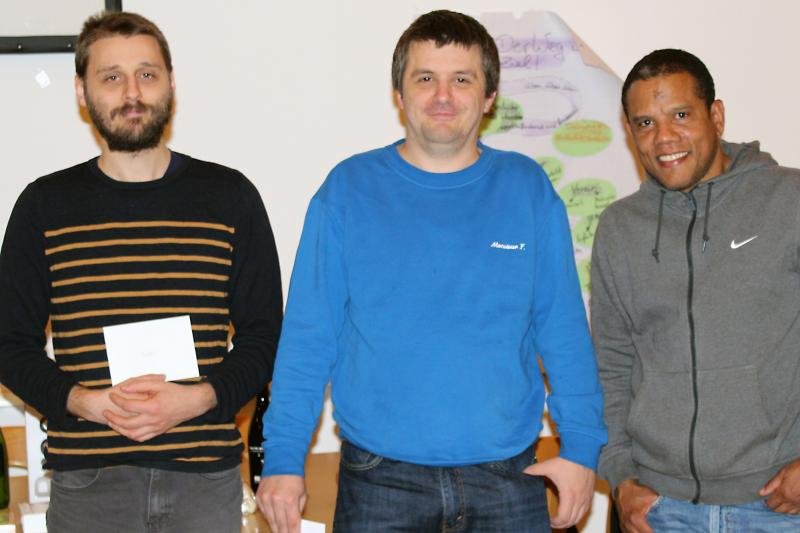 ![]() Die Kategoriesieger Lukas Prüll (U2000), Clemens Prüll (U1850) und Miguel Medina (U1700) |