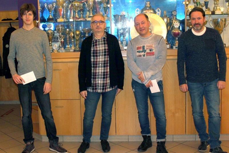 Die Gewinner des Dreikönigsturniers: Radoslav Panajotov (Rang 3), Turniersieger IM Aco Alvir und FM Franz Hager (Rang 2)