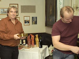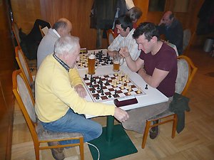 Berni Besner stand gleich zweimal im Rampenlicht, war er doch Sieger des ASK – Blitzcup und Gewinner des ASK Sommercup. Dafür gab’s vom Obmann Klaus ein aktuelles Schachbuch von Michail Tal – man lernt ja nie aus! |