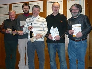 | Die ASK Blitzcupgewinner 2012: Willi Mösenlechner (U 1800), Lukas Prüll (U 2000), 2. Nurija Hasanovic, Bernhard Besner (1.) & Alfred Bieniok (U 1600). |