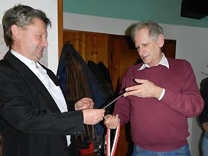 Obmann Robert Rettenbacher beim Verleihen einer der unzähligen Preise an Bernhard Besner. |