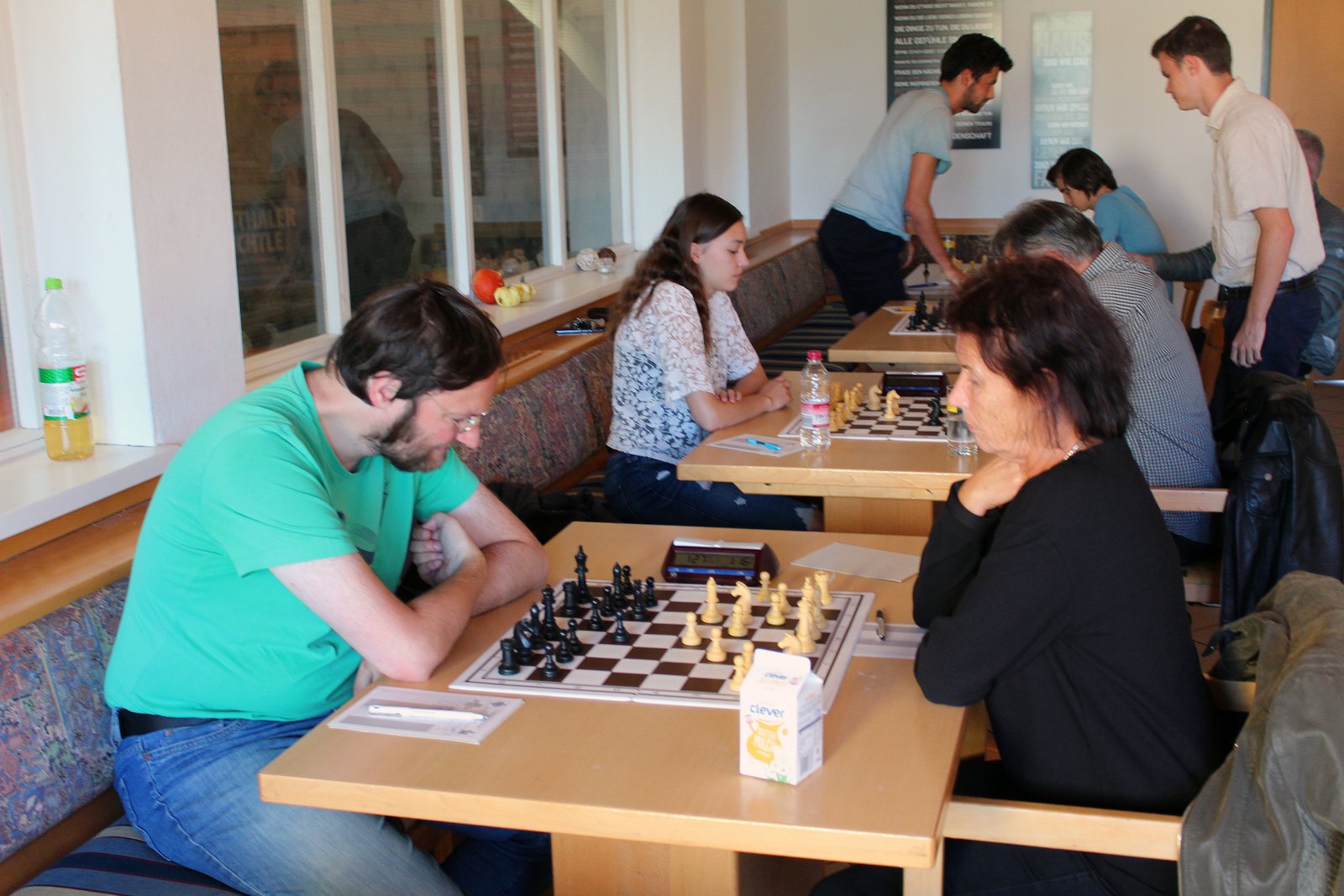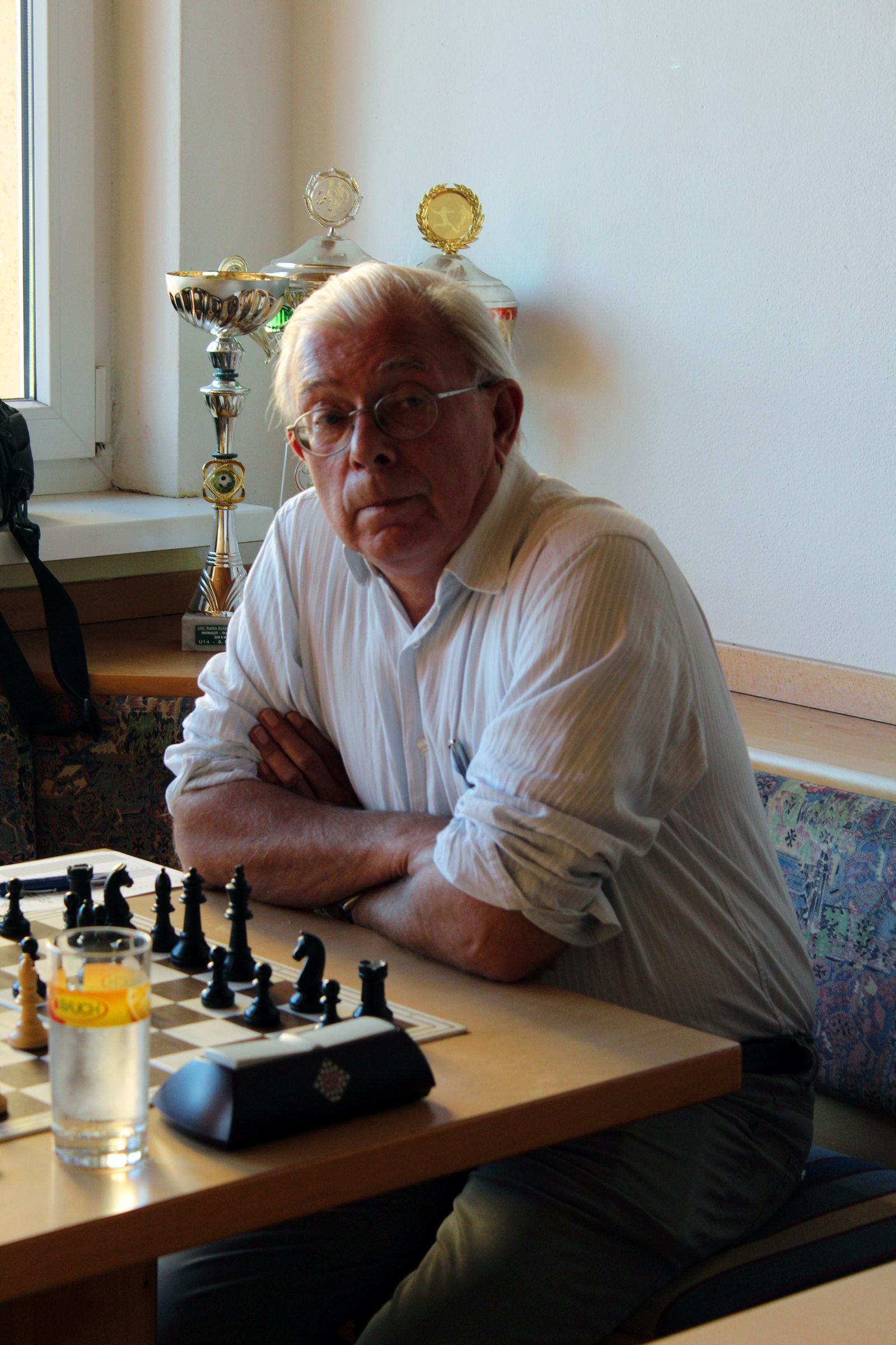 Reinhard hatte wieder einmal eine seiner komplizierten scharfen Partie gegen Wolfgang Söder (1874) auf dem Brett. Ein Remisangebot von Wolfgang lehnte er aus gutem Grund ab. Je länger die Partie dauerte desto zuversichtlicher war Reinhard dass er seine Partie gewinnen würde. Er gewann dann mit seinen Figuren am Königsflügel. Gewonnen!