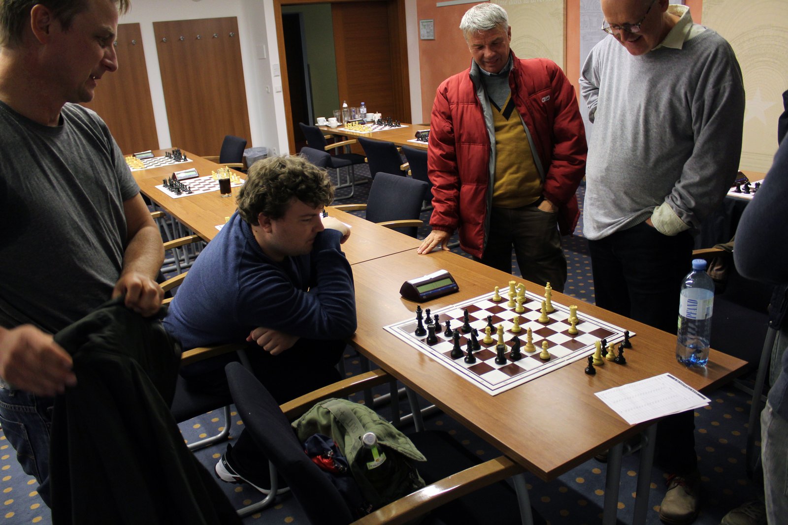 2. Runde: Wir spielen mit veränderter Mannschaft gegen Schwarzach: GM Egor Krivoborodov erreicht ein remis. Matthias steht zwischendurch auf Gewinn, verliert aber, Bernie steht gut, verliert aber gegen den fulminanten Angriff von Frank Roeberg, Robert erreicht ein schnelles remis gegen Juro Ljubic, Michael überlebt ein Figurenopfer von Norbert Stöckl, steht danach auf Gewinn und versemmelt die Partie ins remis, Heli steht nur kurz auf Gewinn gegen Nurija, der aber geschickt ins remis abwickelt. Endstan damit eine unnötige und unglückliche 2:4 Niederlage.