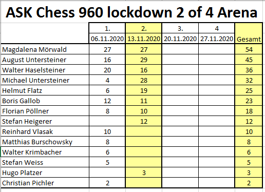 Am Freitag, den 13. (!) versuchten 9 Teilnehmer nicht nur ihr Glück, sondern testeten auch ihr Chess 960-Können.