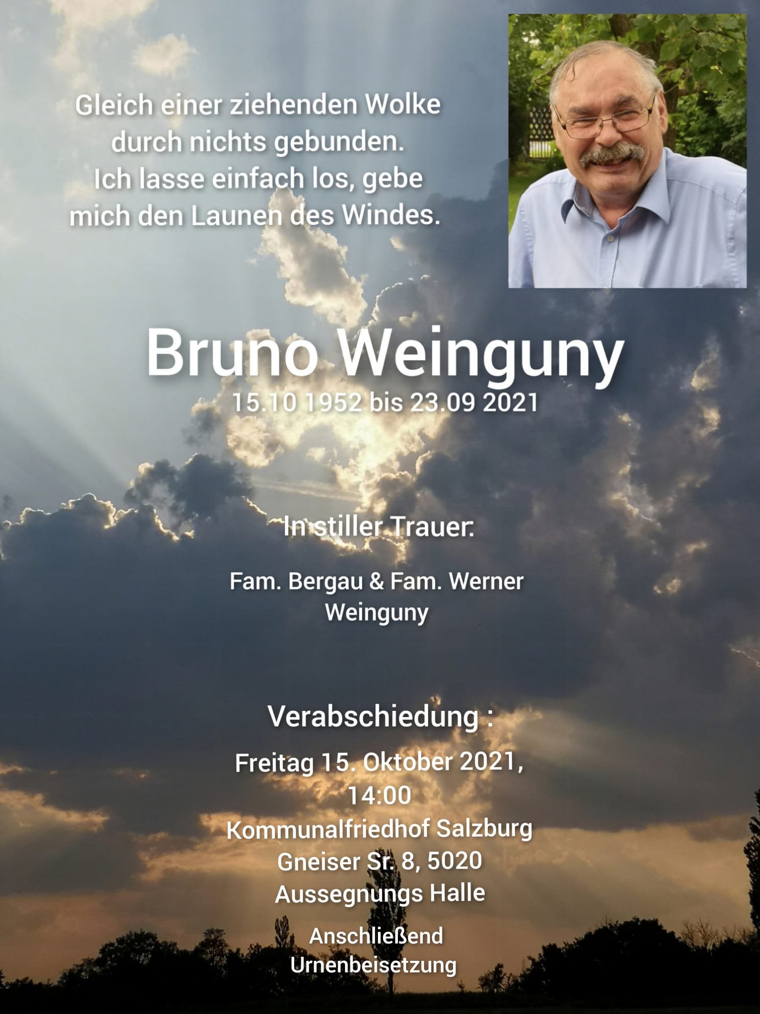 Die Verabschiedung findet am 15.10.2021 statt: