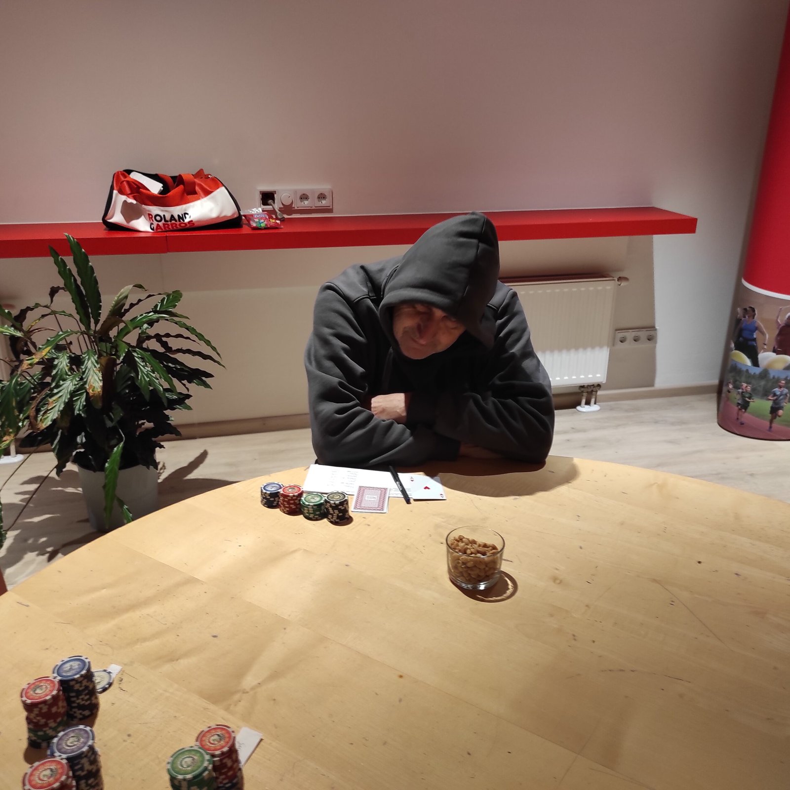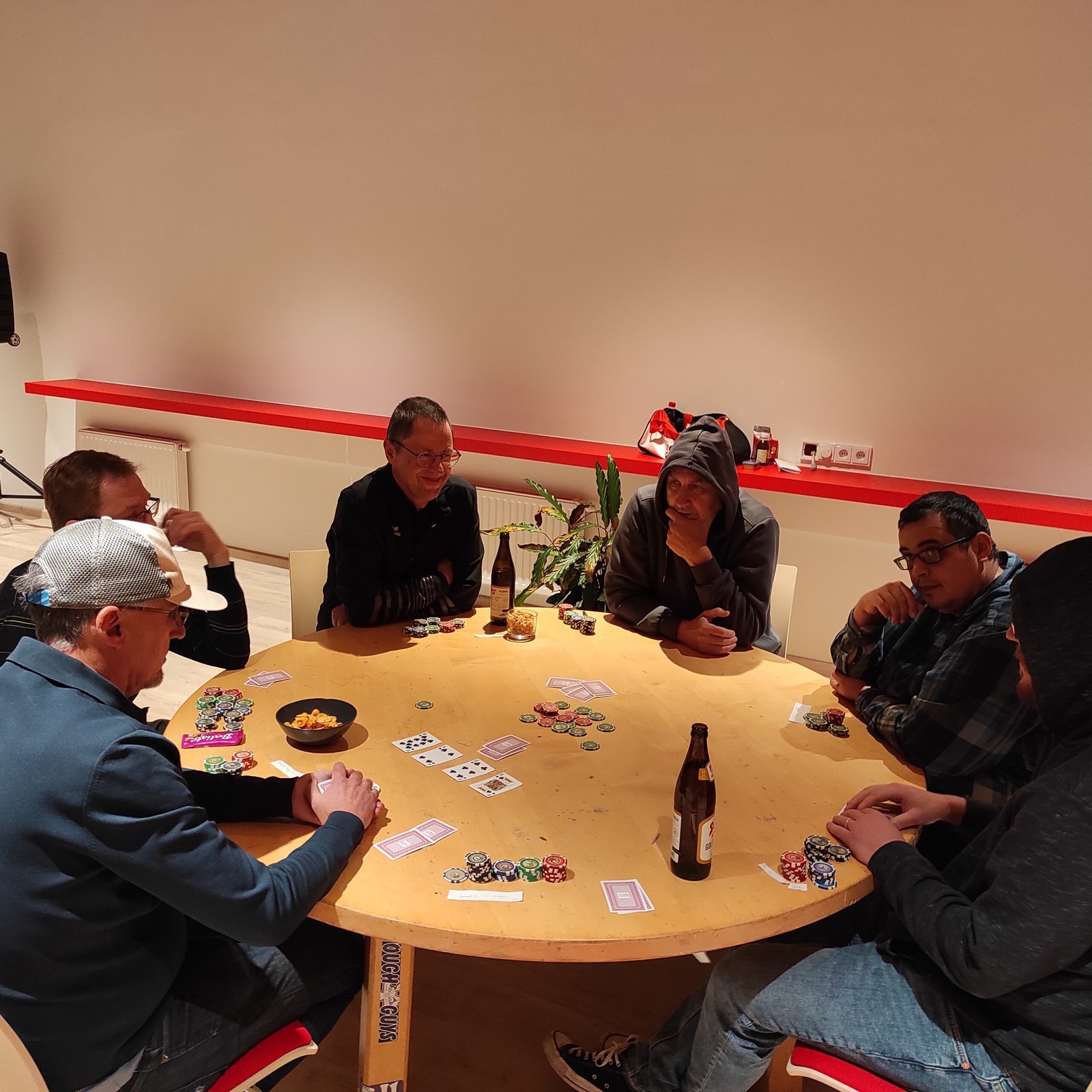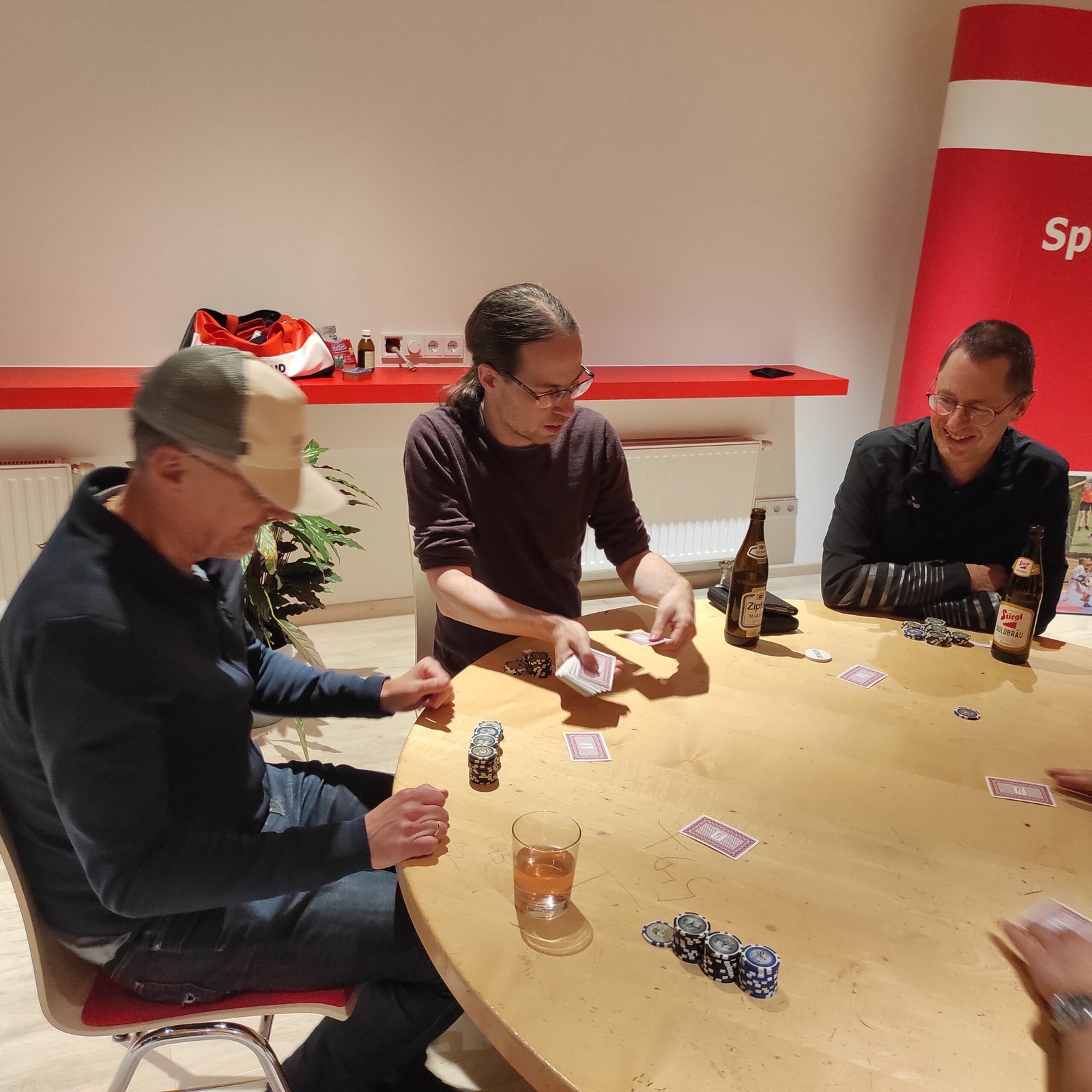 Die nacheinander ausgeschiedenen Spieler im Pokerturnier fanden sich in einer kleinen selbst organisierten Runde wieder oder spielten ein paar Blitzschach-Partien. Anatol sorgte in den Pausen mit belegten Broten, Obst und Knabbereien für das leibliche Wohl um alle Spieler für eine lange Pokernacht zu wappnen.
