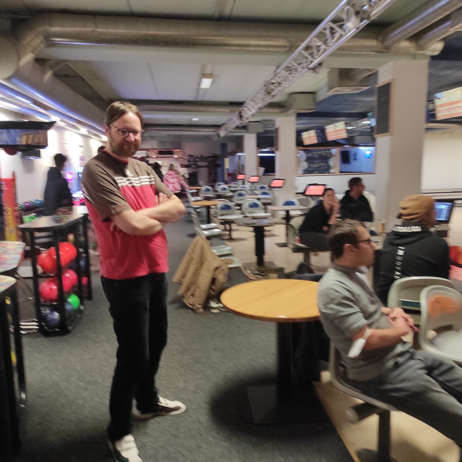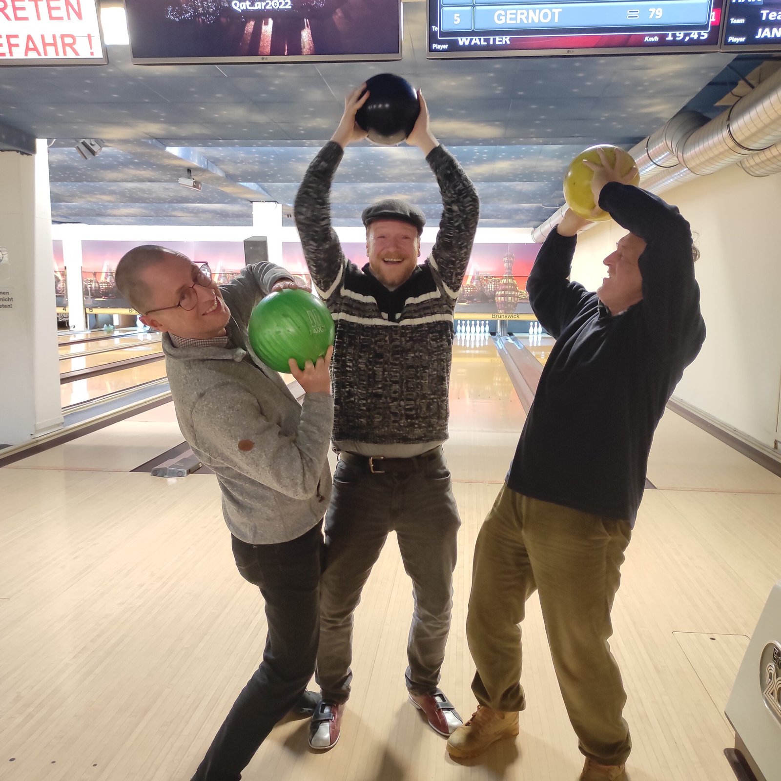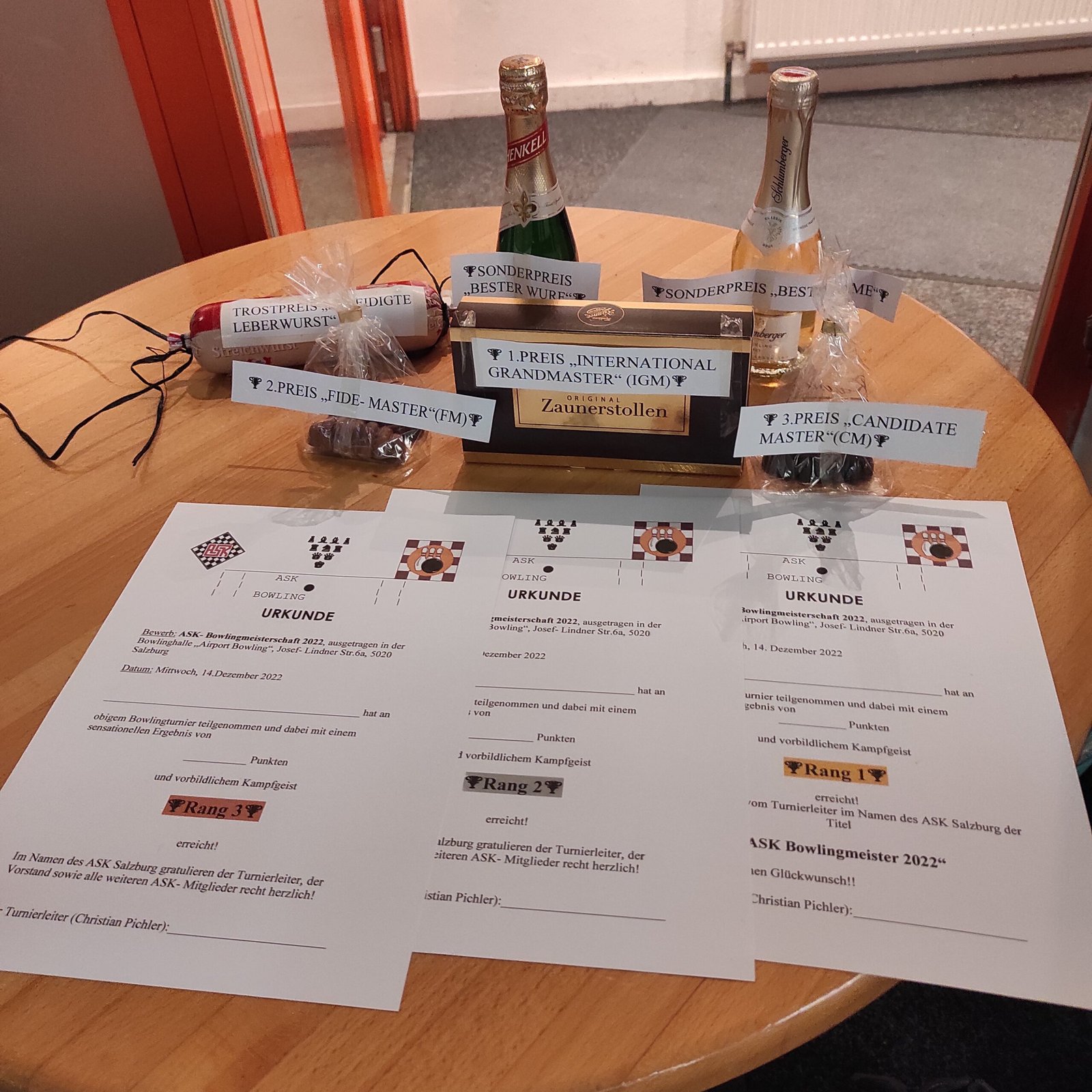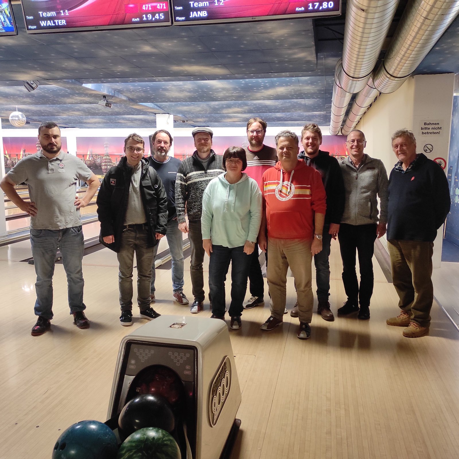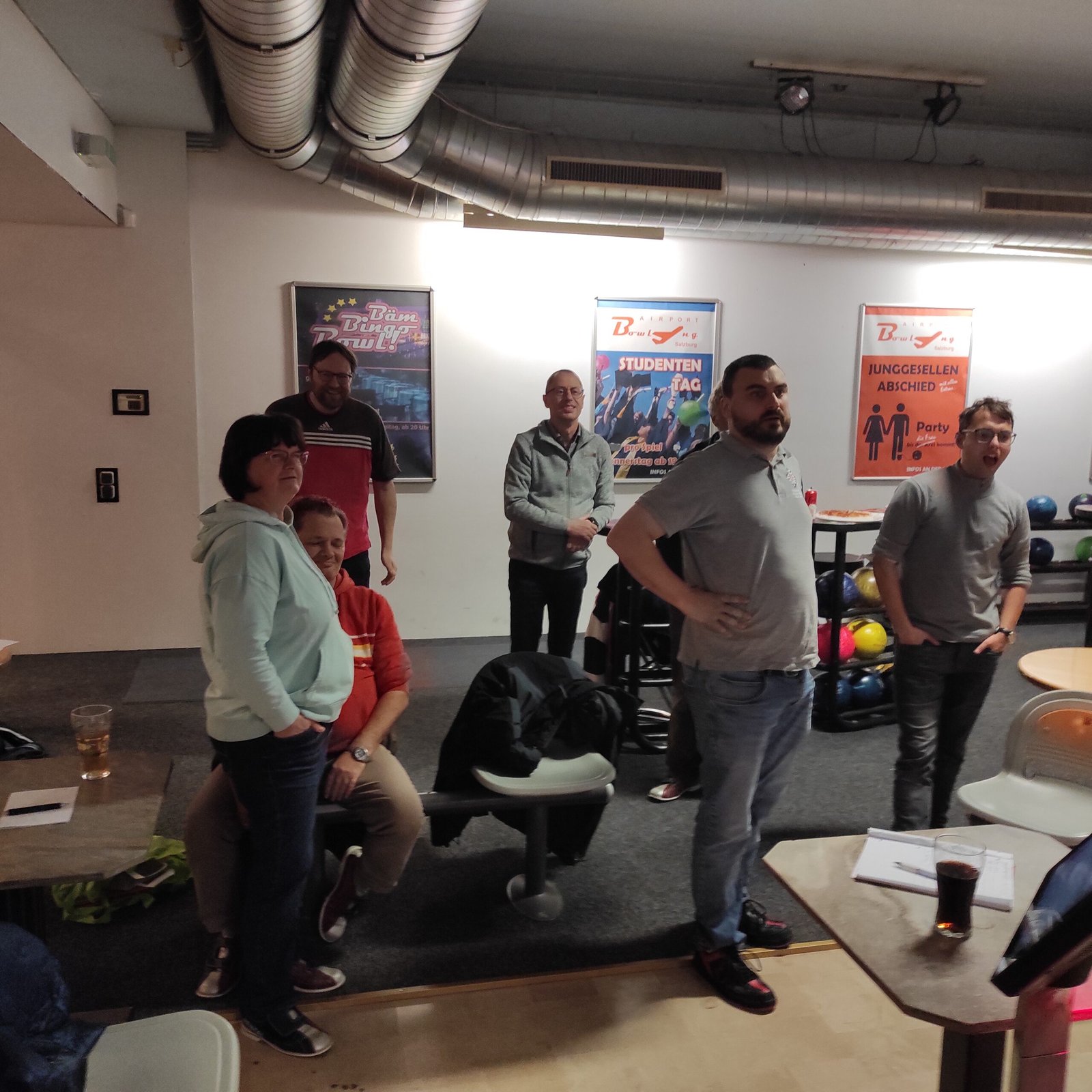 3 Runden spielten wir, beste Serie zählt, eine vierte Serie war bei Zustimmung der Teilnehmer optional möglich. Es zeigte sich besonders am Anfang, dass die meisten etwas außer Übung waren, nur wenige Strikes und etliche Gutter. Trotzdem kam jedes Mal Freude bei uns allen auf wenn jemandem ein guter Schub gelang, das ist eben der ASK. In der Runde 1 gelang lediglich Walter Hattinger (122), Gernot Neuwirth (108) und Stefan Stader (105) über 100 Pins, was durchaus ausbaufähig war. Das Ehepaar Flatz, Jan und ich hatten unter 60 Pins erzielt und waren Kandidaten auf den Knackwurstpreis, den der letzte immer umgehängt bekommt, was ich immer war wenn ich mitgemacht habe.