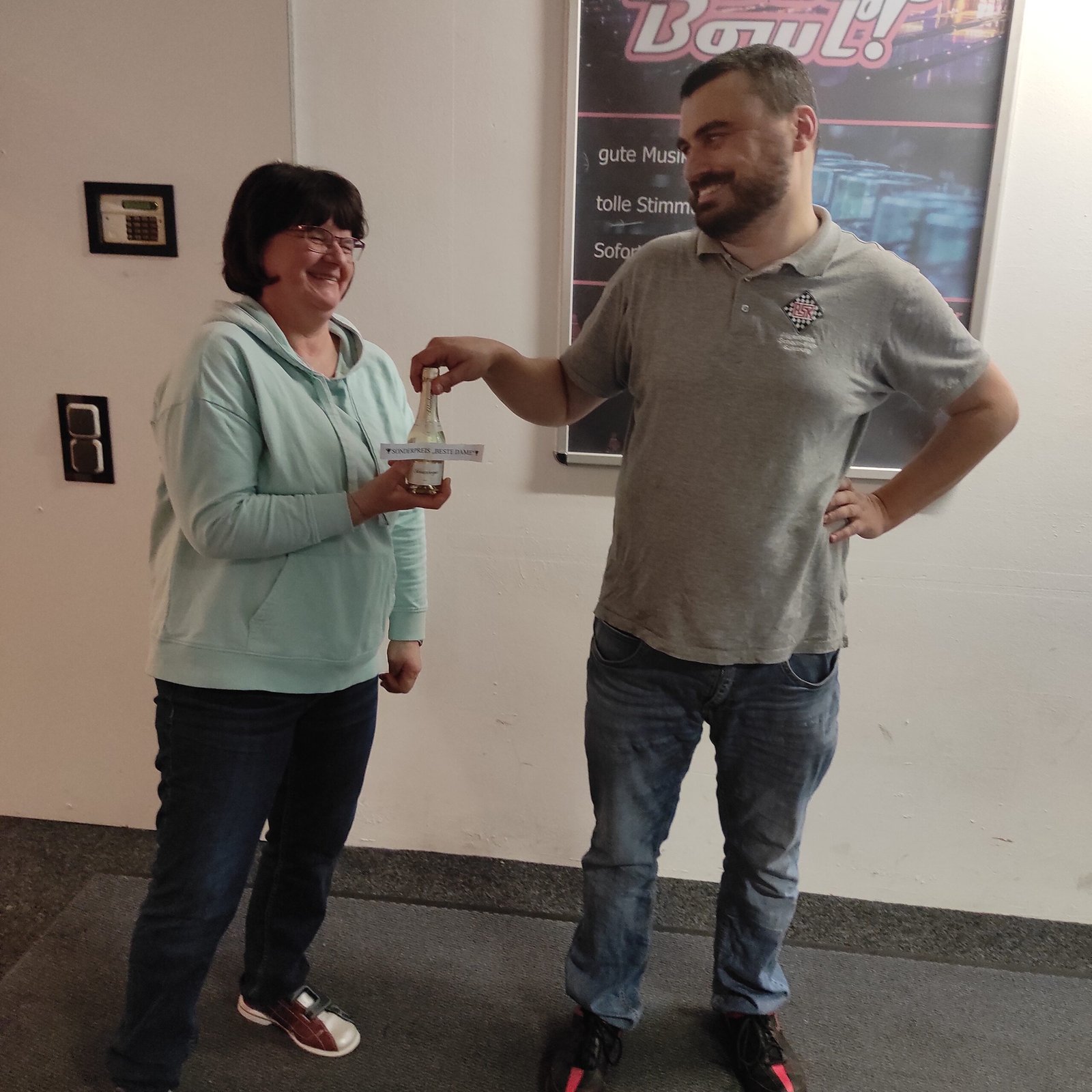 Aber noch waren ja 2 Runden zu spielen. In Runde 2 gab es dann doch mehr 100er zu feiern und die Strikes und Spares wurden mehr. Stefan Stader (124) und Richard Untersteiner (122) hauten gute Ergebnisse raus, Walter hatte ebenfalls eine gute Serie, konnte sich aber nicht verbessern. Anni Flatz (113) schoss sich ebenfalls in die Spitzengruppe und weg vom Wurstplatz, den sie nach Runde 1 innehatte. Dort stand jetzt Jan. Christian Pichler (108) hatte ebenfalls dreistellig angeschrieben, beklagte sich aber an diesem Tag, dass ihm seine Spares nicht gelingen würden. Man kann eben nicht immer in Topform sein. So war Stefan Stader mit 124 knapp vorne vor 2 Verfolgern mit 122, Hanni war sogar Vierte.