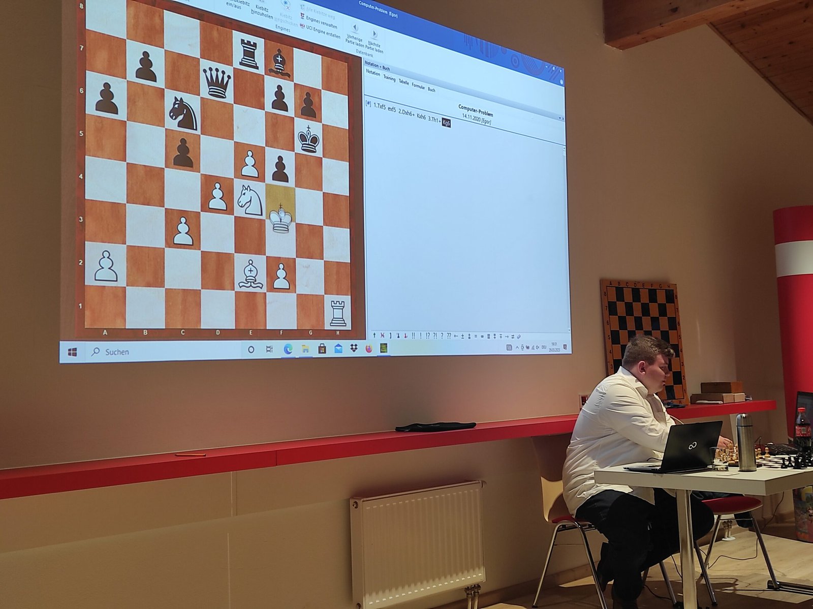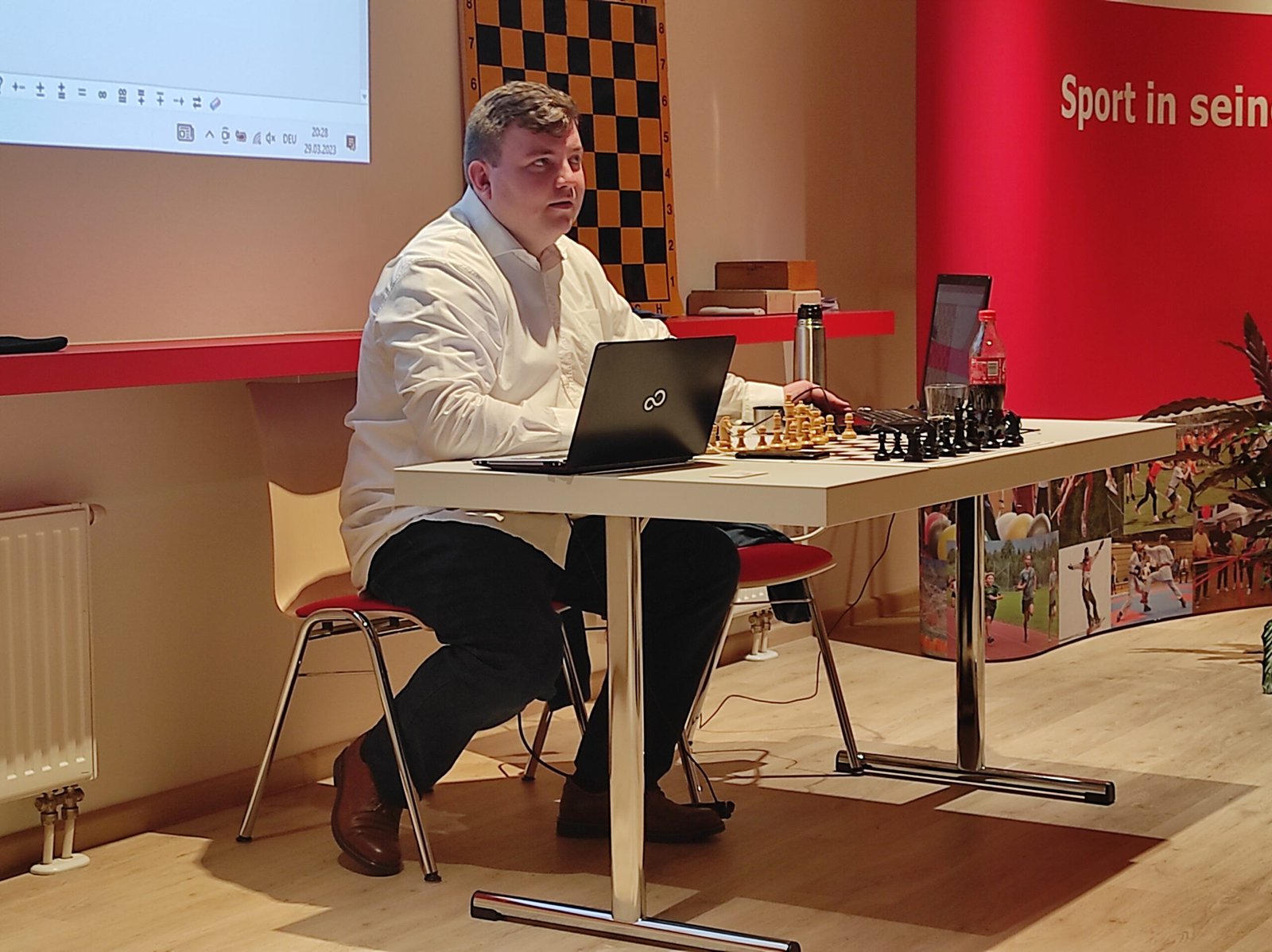 Darüber hinaus laden wir den Großmeister aber auch für Trainingseinheiten ins ASK-Klublokal ein – am 29.3. fand dazu die erste Veranstaltung statt. Der erste Teil des Trainings von 17:00-18:30 war an Jugendliche und Elo-schwächere Spieler*innen gerichtet. Hier hätten wir uns etwas mehr Beteiligung gewünscht – aber einerseits waren zu diesem Zeitpunkt noch viele Mitglieder in der Arbeit, zum anderen war das Training für die Jüngsten im Kindertraining dann doch noch zu schwer.