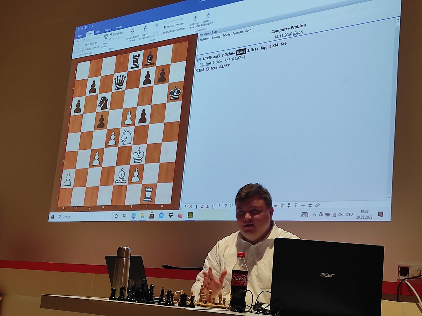 Der zweite Teil von 19:00-20:30 fand dann gut besucht für bereits fortgeschrittenere Spieler*innen statt. Hier ging Egor Krivoborodov auf Taktik und Strategie ein und zeigte Partieschnippsel zu Tragikomödien im Endspiel aus der World Blitz/Rapid Chess Championship 2022.