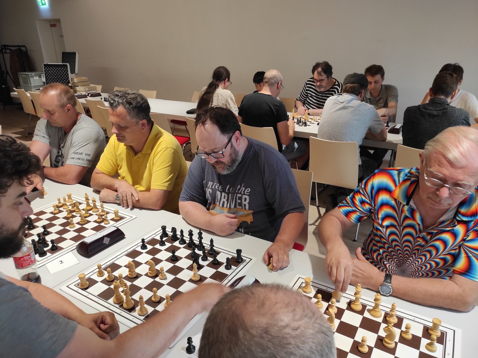 Dieser lustige, manche meinen eher stressige, Bewerb bildet den traditionellen Abschluss der Mannschaftsmeisterschaft und gibt eine Vergleichsmöglichkeit unserer im SLV-Bewerb antretenden Mannschaften im klassischen Blitzschach ohne Zeitzugabe. Allerdings gibt es ein raffiniertes aber einfaches System, das Walter Hattinger erfunden hat. Pro Klasse Unterschied bekommen die Spieler der unteren Klassen eine Minute Zeitzugabe und die höherklassige eine Minute Abzug der Bedenkzeit. Das ergibt immer spannende Kämpfe, heuer auch schon mal 7:3 Minuten, in der sich aber wieder einmal unsere Spitzenspieler durchsetzen konnten.