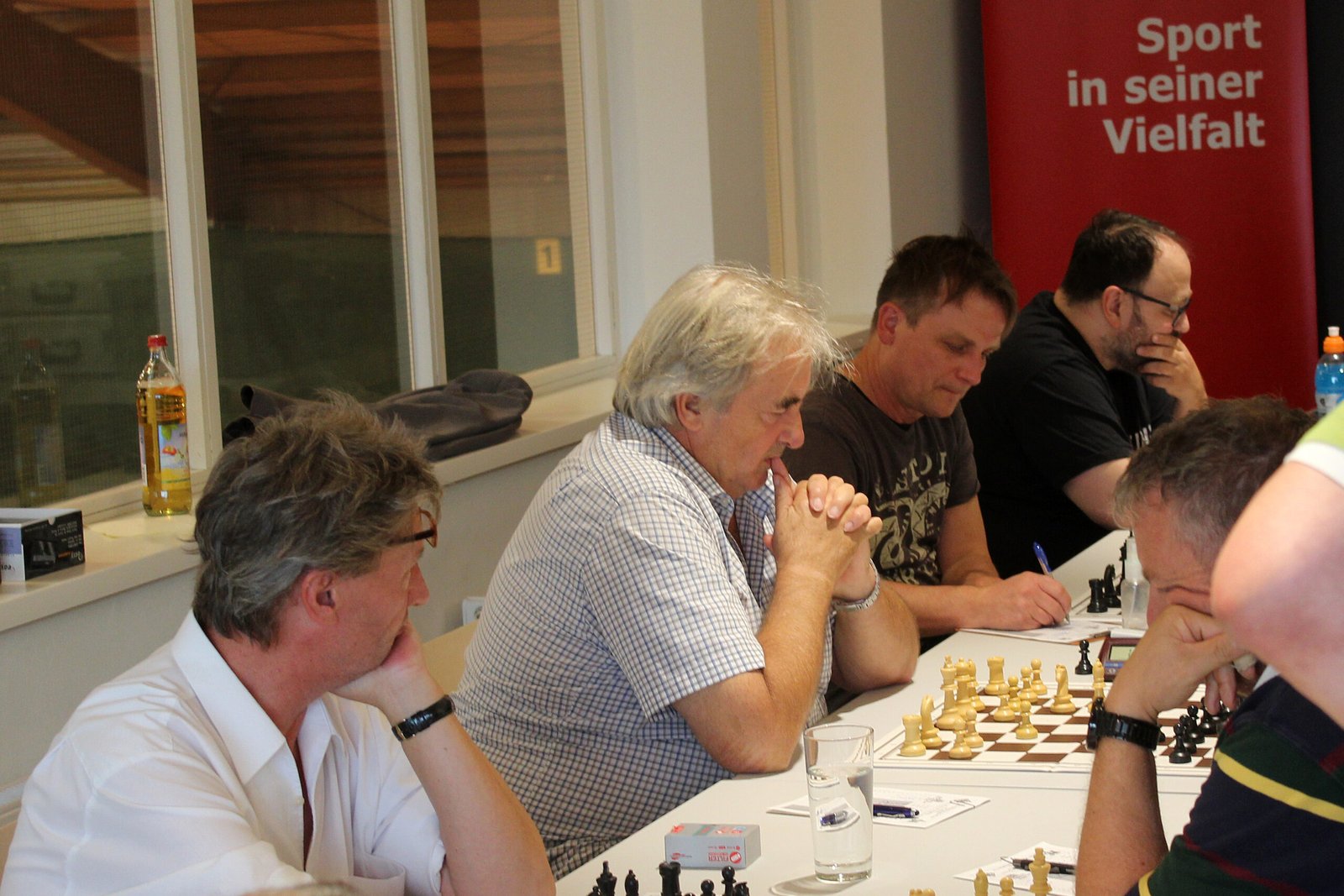 Am 1. Brett hatte sich Bernhard Besner mit Schwarz eine angenehm zu spielende Stellung gegen Alois Waldner herausgearbeitet. Die Freude über das 2:0 war noch nicht vergangen, als die beiden die Figuren wieder aufstellten. Auf meine Nachfrage, ob die Partie mit Remis ausgegangen sei, antwortete Bernhard, dass er gewonnen habe. Dem Schreiber dieses Berichts ist allerdings unklar geblieben, wie es so schnell zur Aufgabe von Alois gekommen ist.