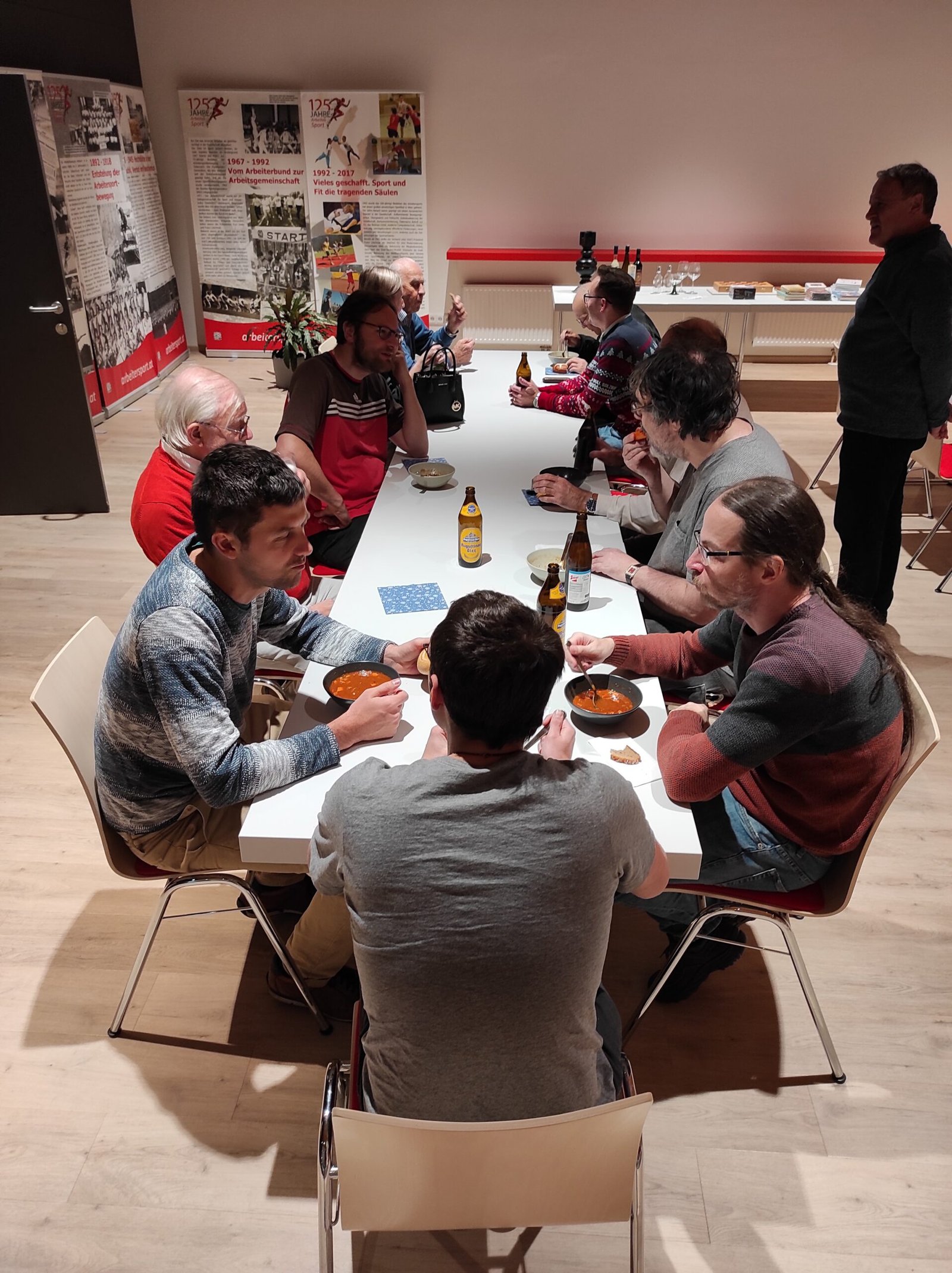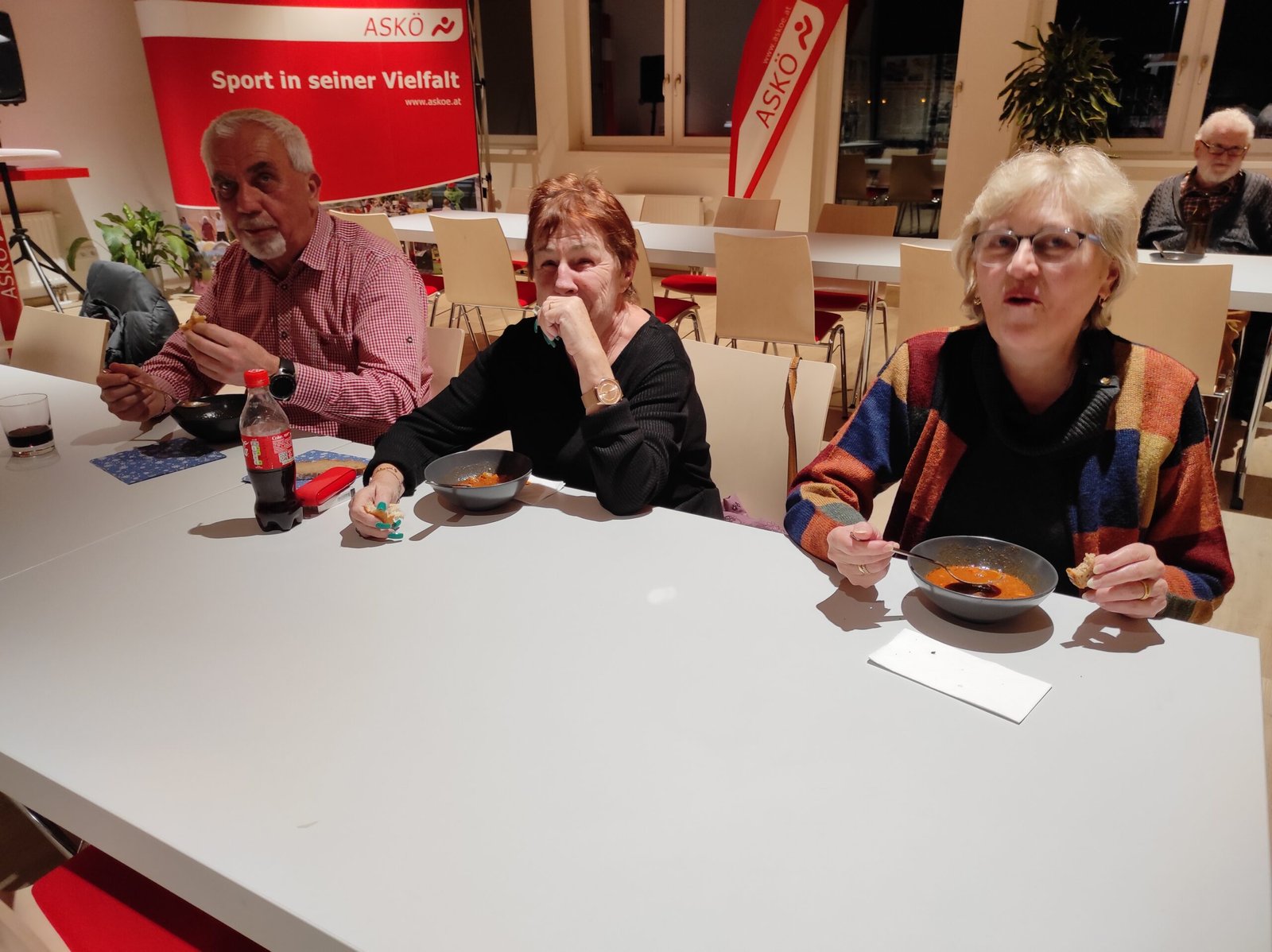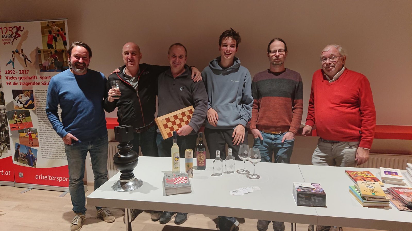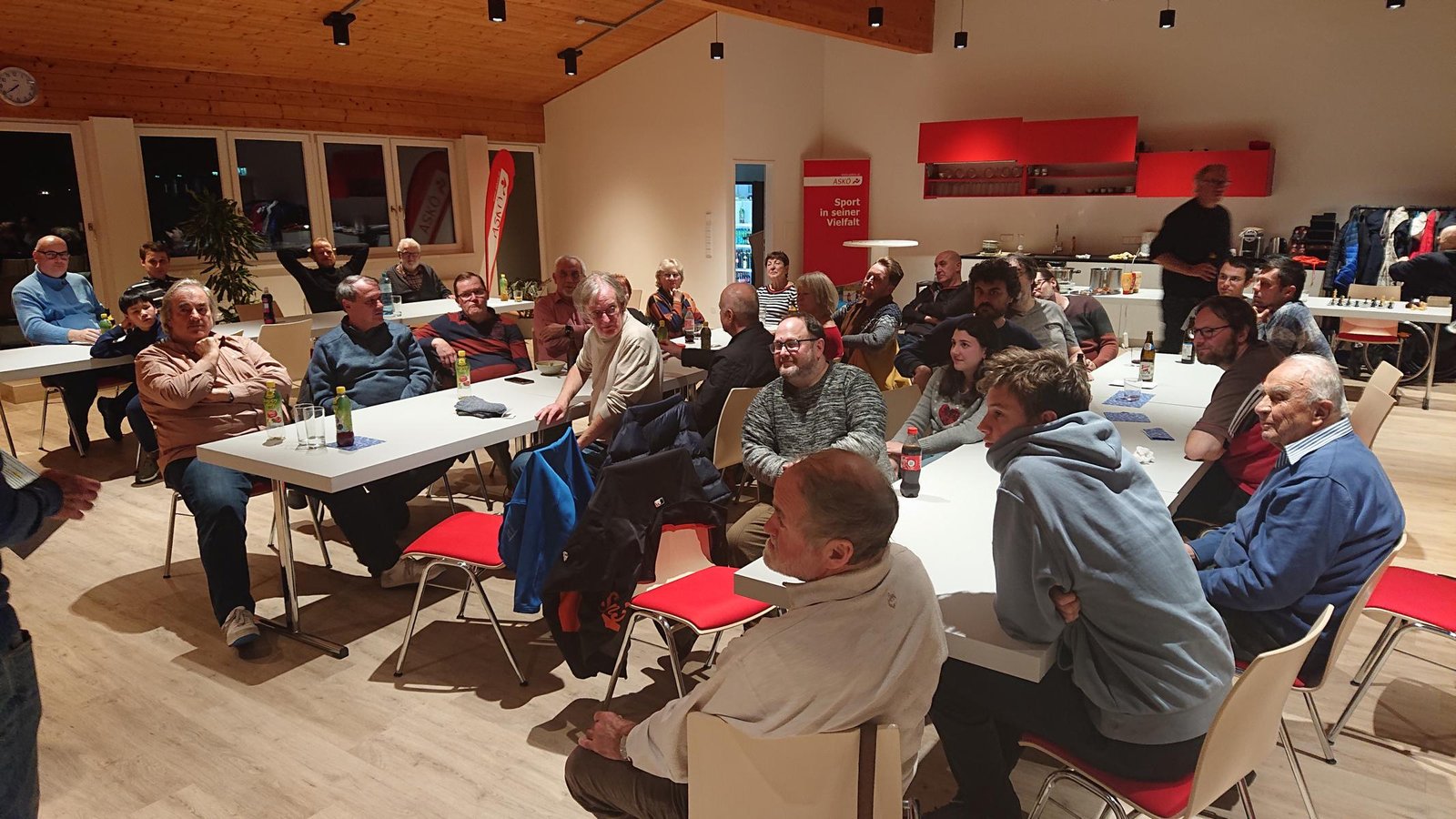 Auch heuer fand am letzten Klubabend des Jahres wieder die offizielle Weihnachtsfeier des ASK statt. So herrschte – trotz einiger Krankheitsfälle – am 20.12. reger Andrang, wobei diesmal Rosi und Klaus für Anni und Heli Flatz einsprangen und alle mit Gulaschsuppe, Würstel u.a. versorgten. Auch die Jugendlichen nahmen im Anschluss an das letzte Kindertraining des Jahres an der Feier teil. Die gesamte Verpflegung – inkl. Getränke – war auch dieses Jahr wieder gratis. Danke Willi Veigl für den wie immer vorzüglichen Rotwein! Ein großer Dank gilt all jenen, die den ASK an diesem Abend durch eine freiwillige Spende unterstützt haben.