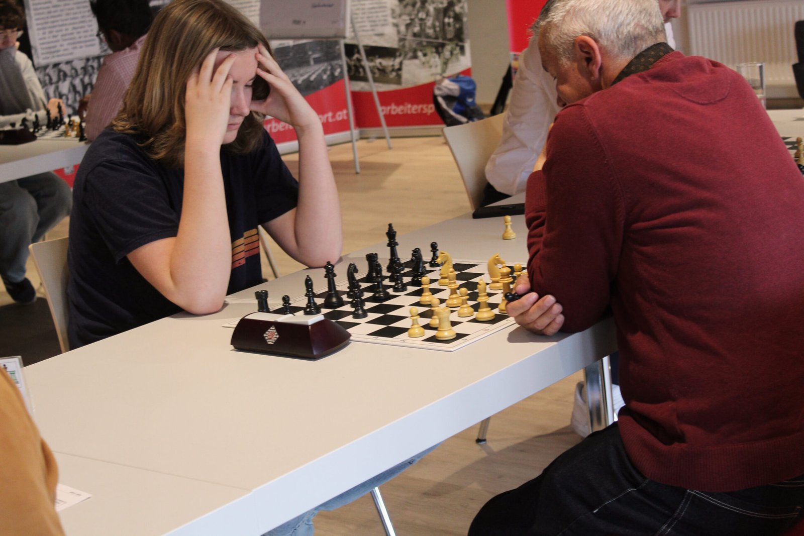Die Jugendspieler hatten gegen die spielstarken Erwachsenen einen schweren Stand und wurden großteils erst in den Runden 5-7 gegeneinander gelost.